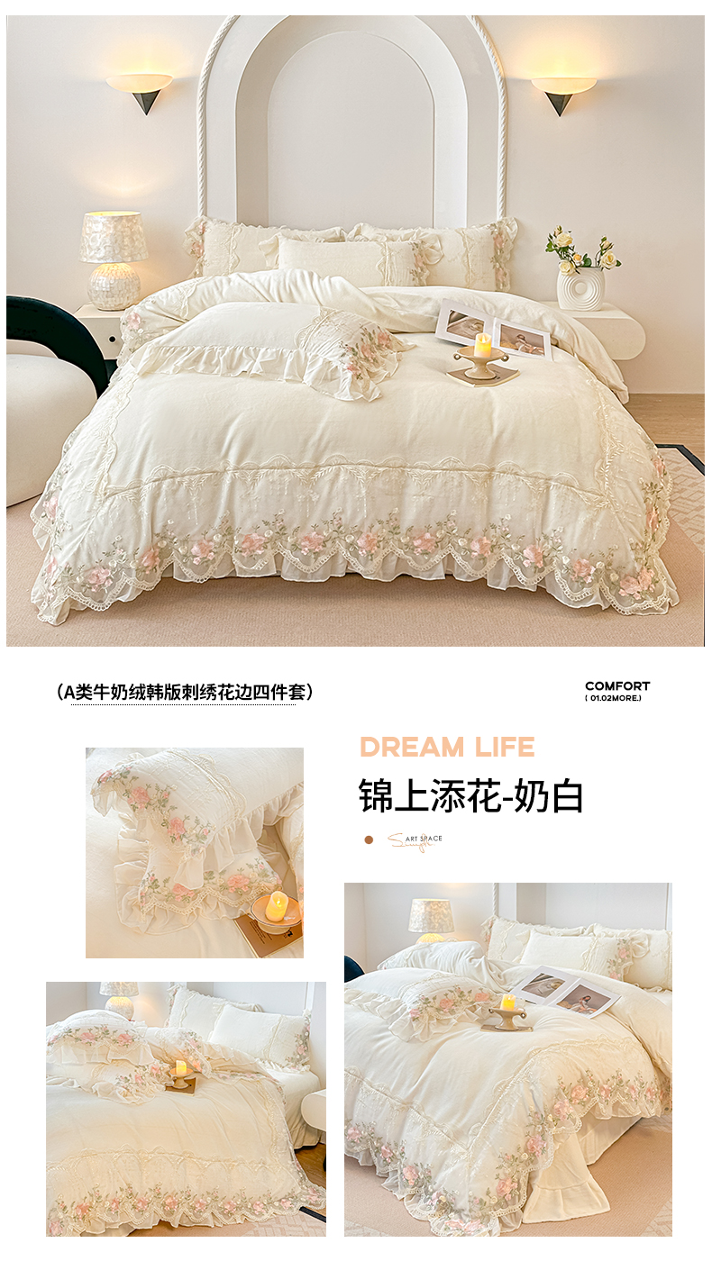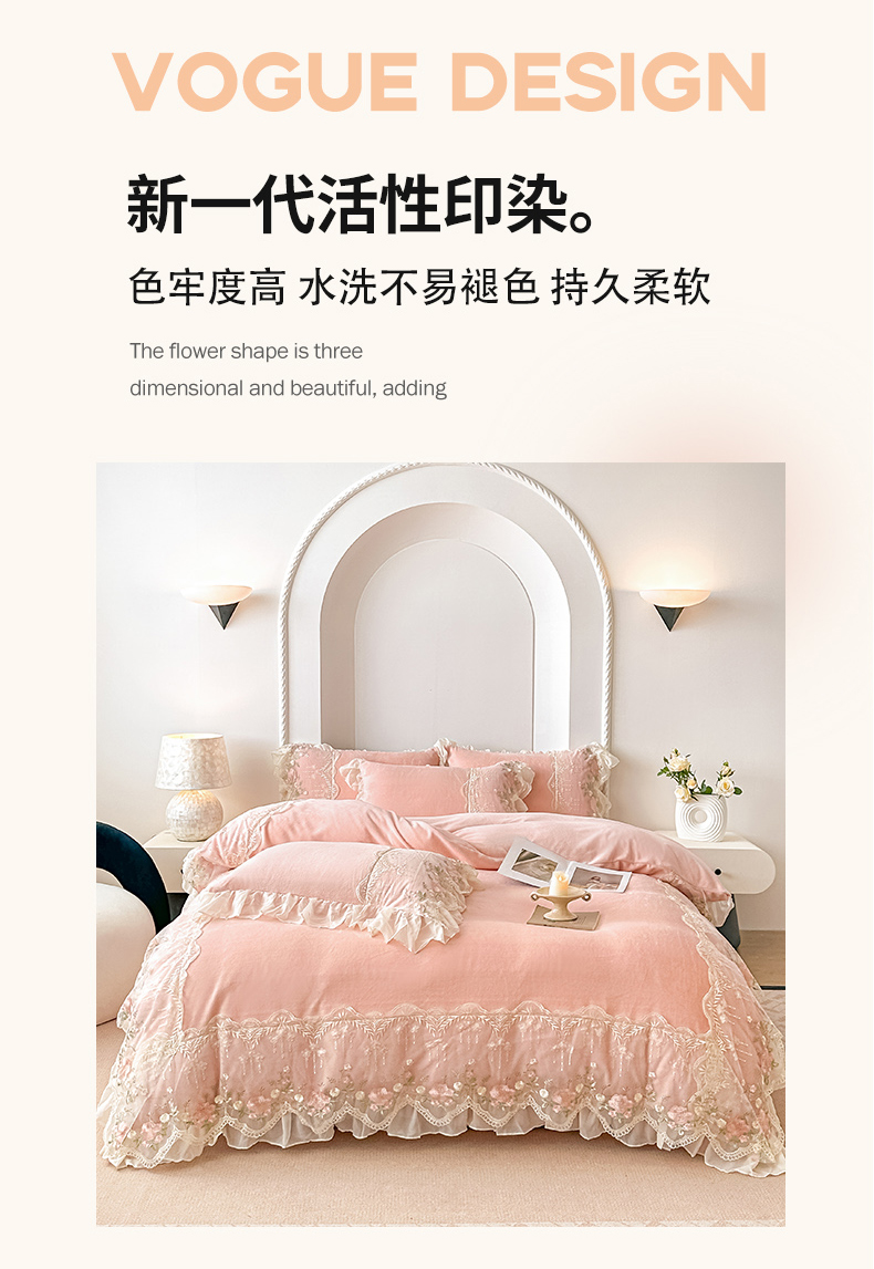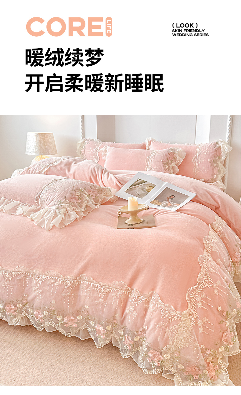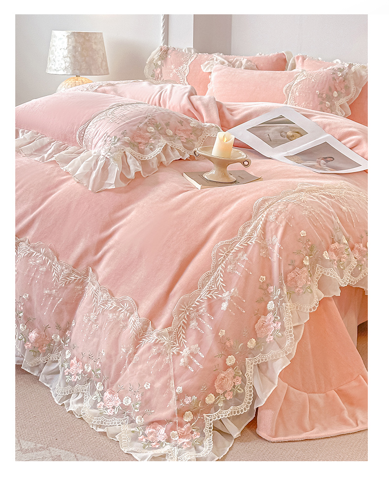 当前位置: 91家纺网 > 商品网购 > 床品套件 > 四件套 > 牛奶绒四件套 > 凯美家居 2025新款A类牛奶绒蕾丝刺绣四件套-锦上添花 锦上添花-粉玉