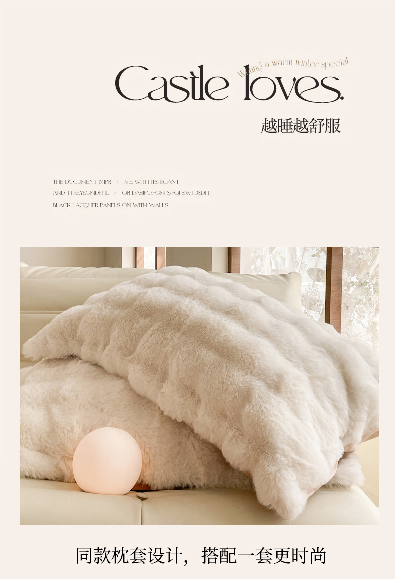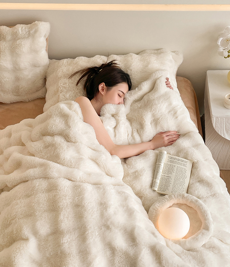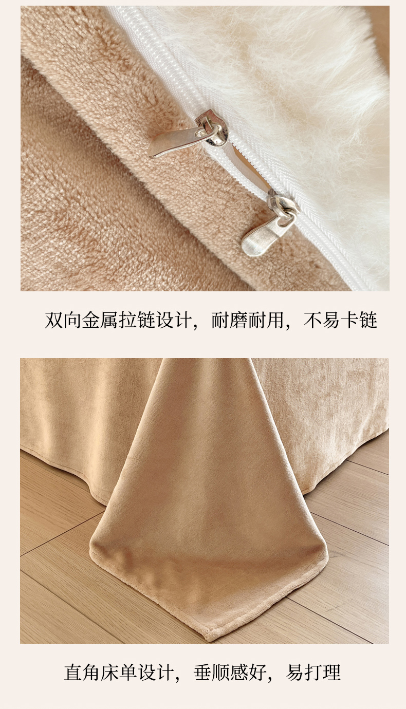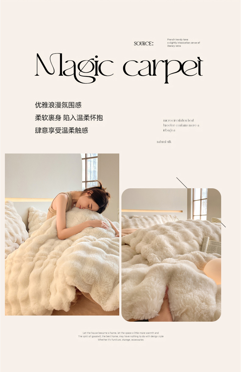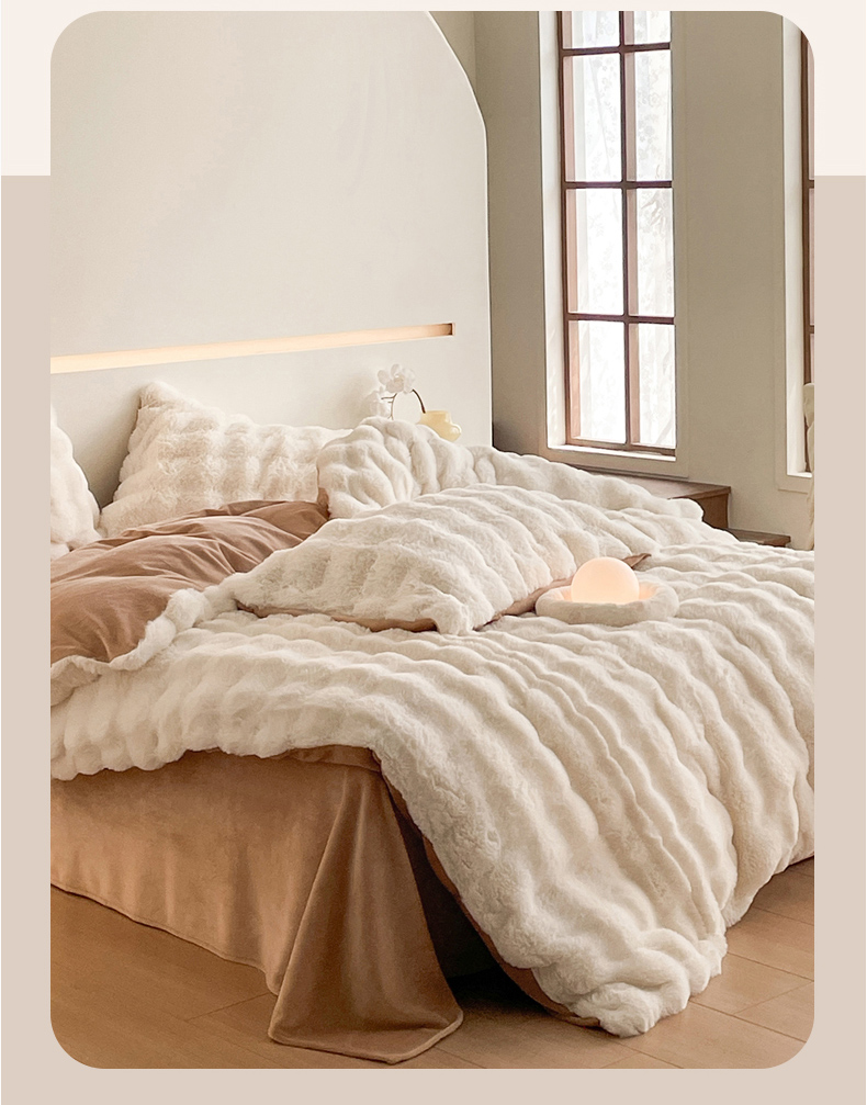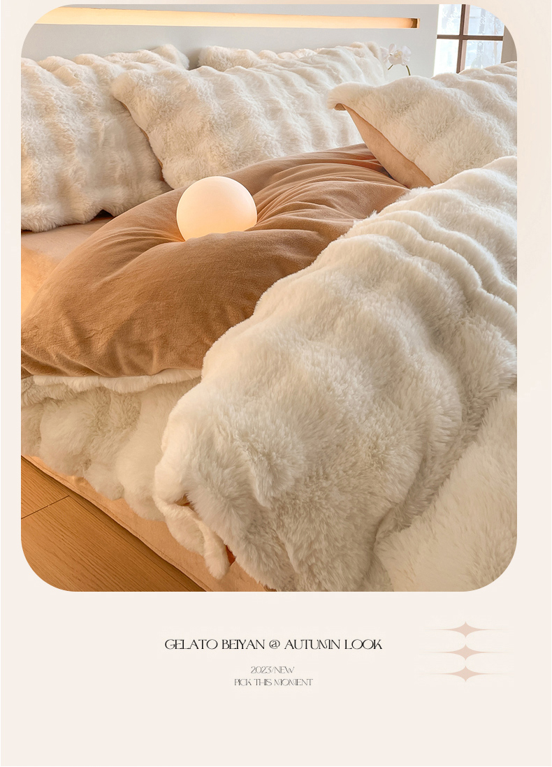 商品名称:曲之慕 2025新款高克重皮草绒牛奶绒兔毛四件套 颜可-白+咖
