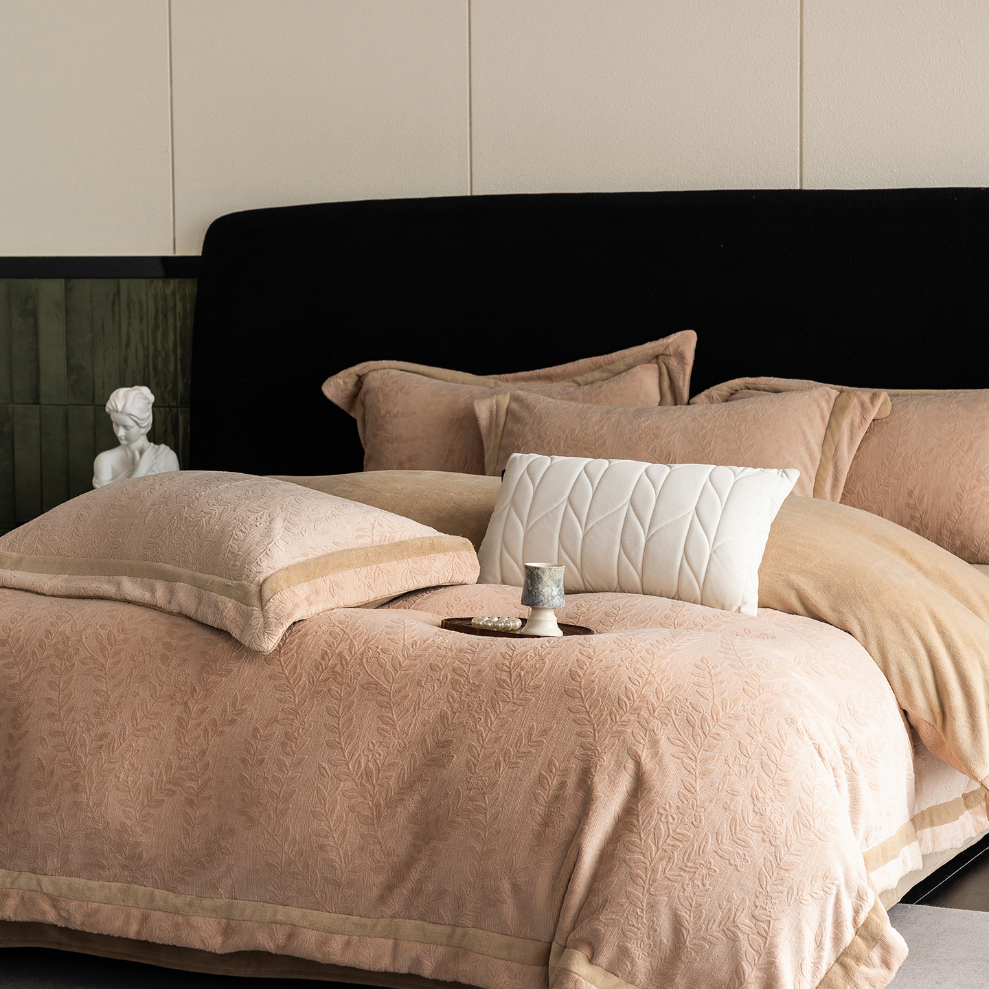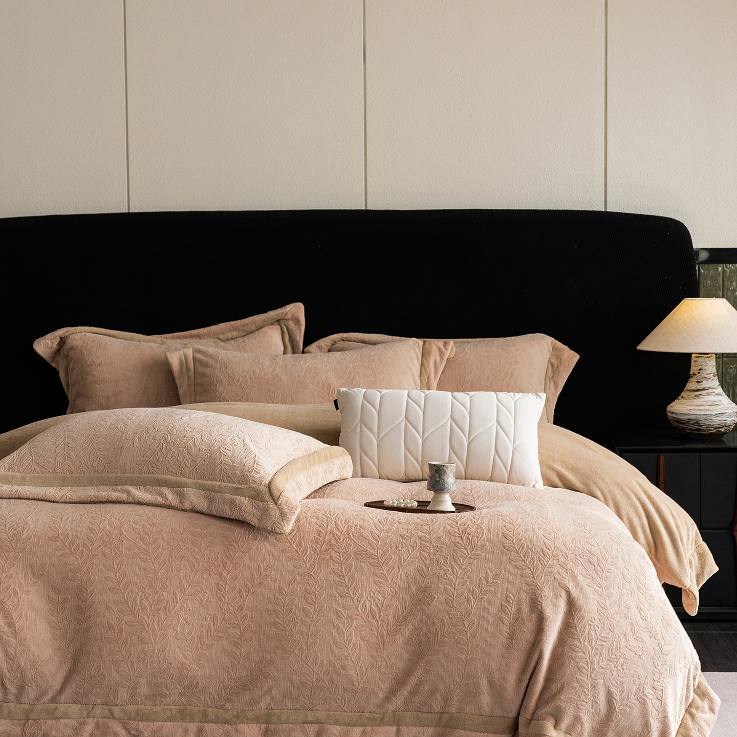 瑞雪家居 2025新款全消光雕花牛奶绒系列-唛叶 唛叶-豆沙粉