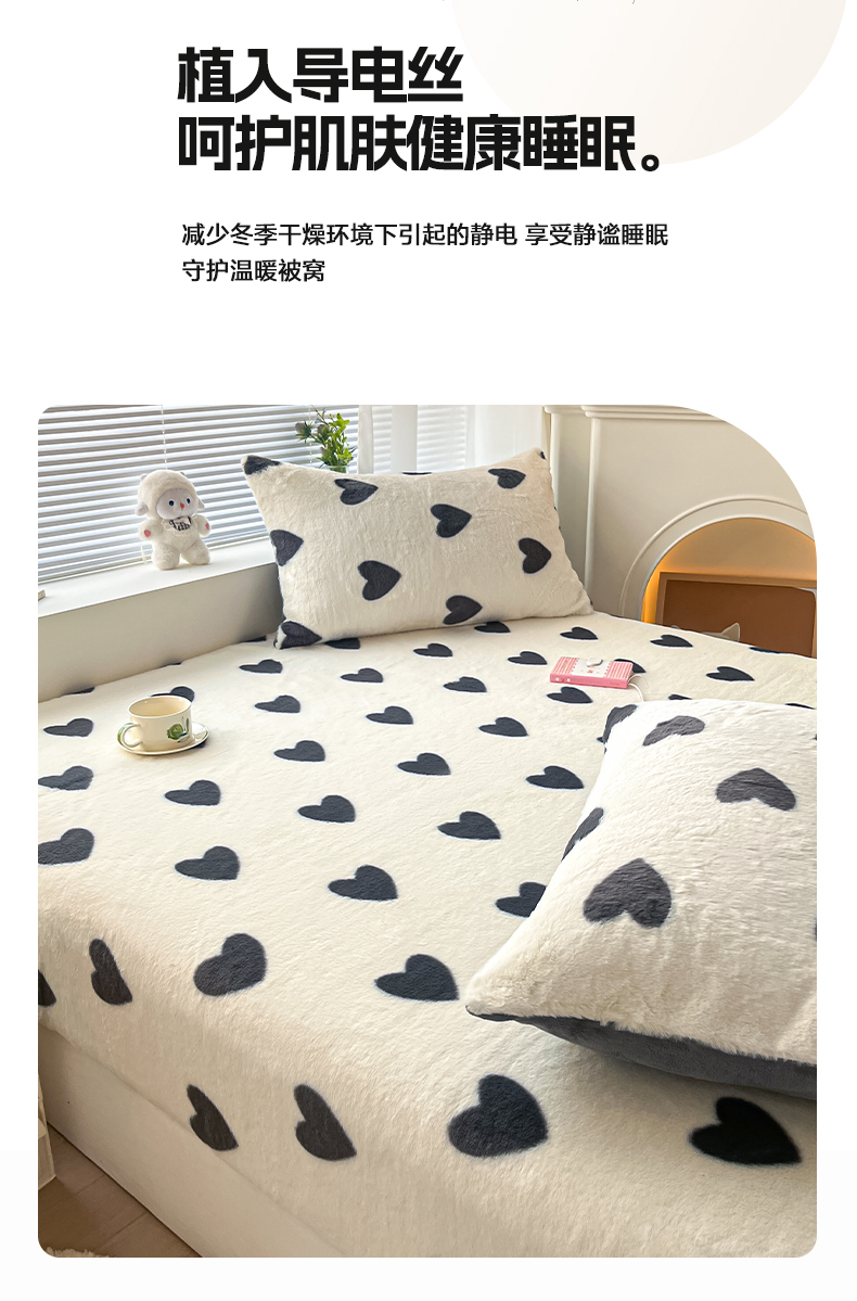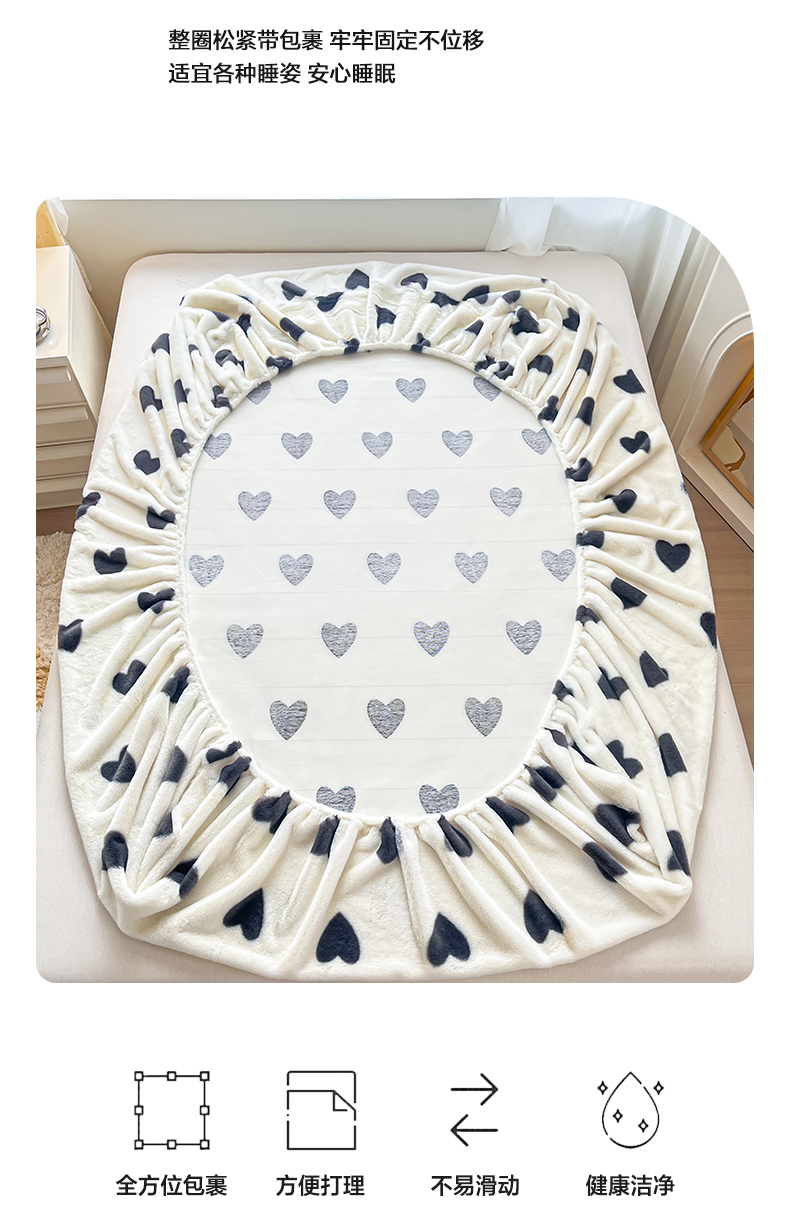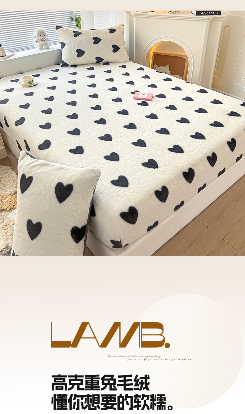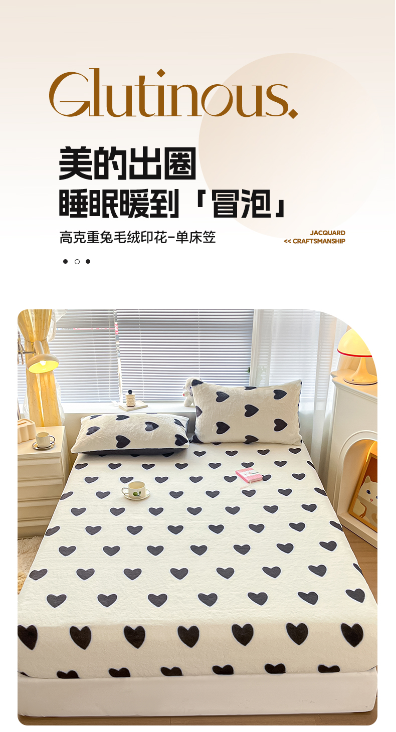 商品名称:雅居纺家纺 2025新款高克重兔绒印花单床笠-爱心 爱心-灰