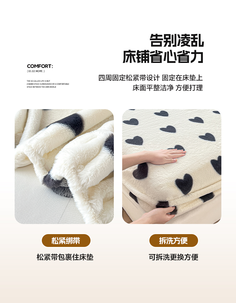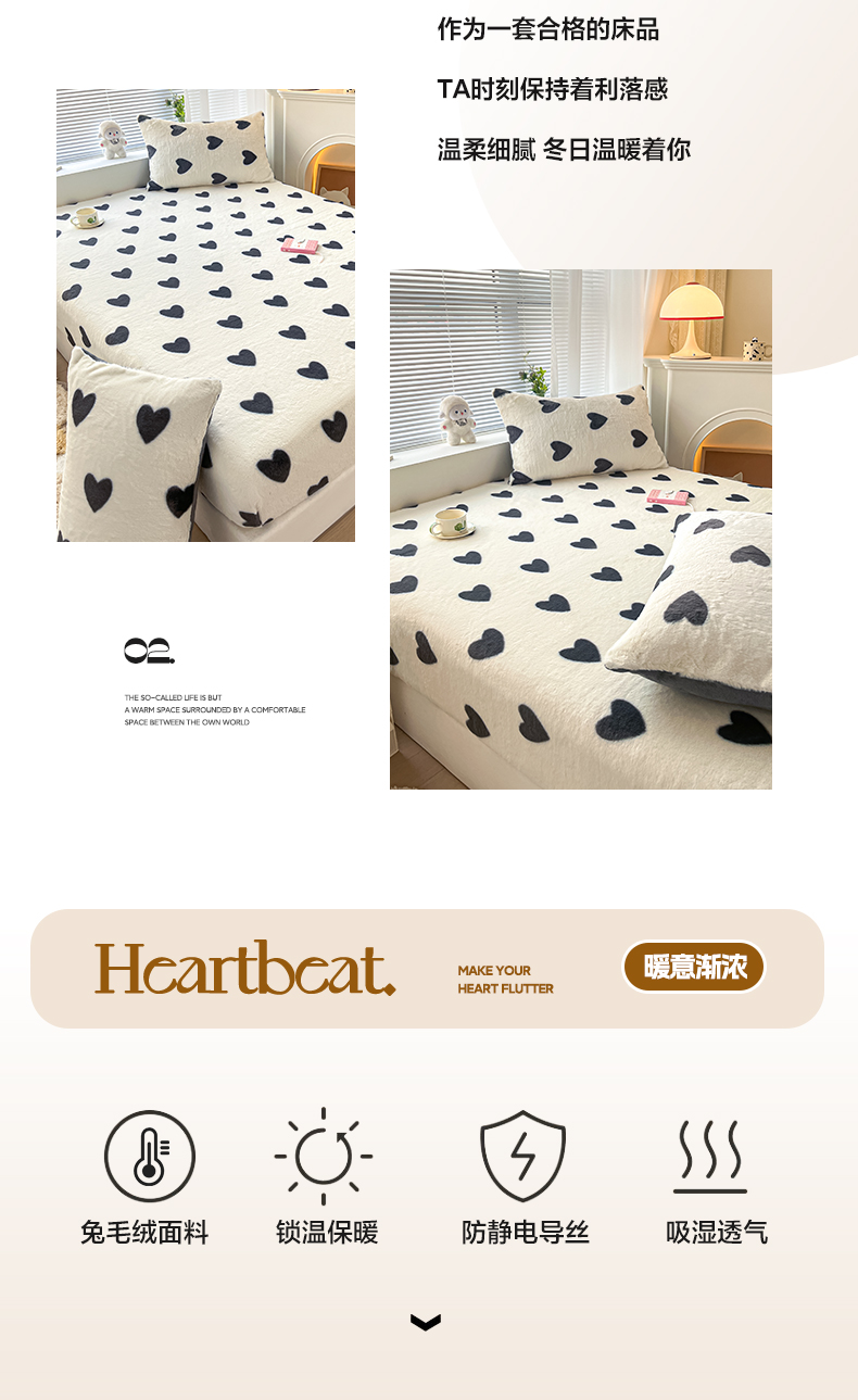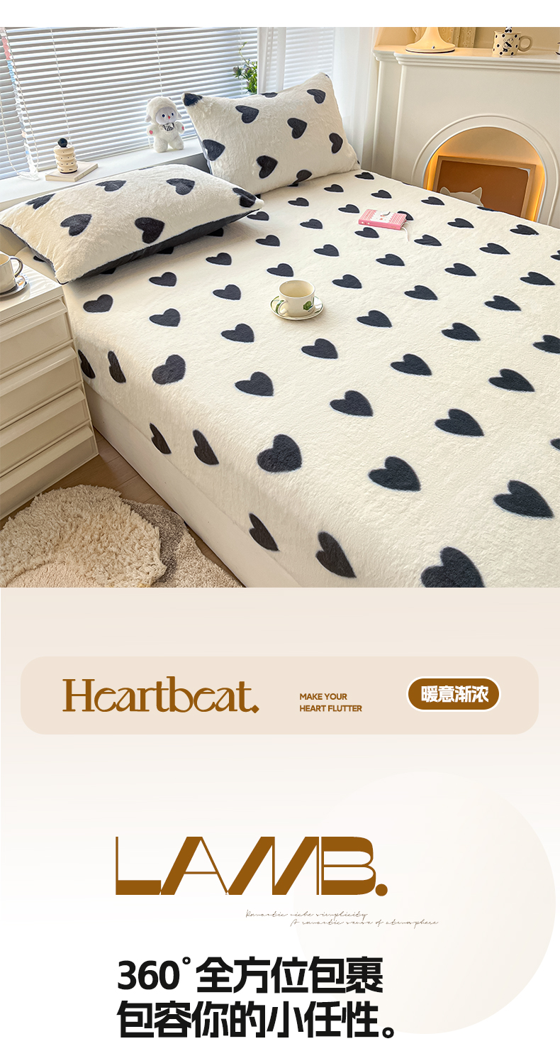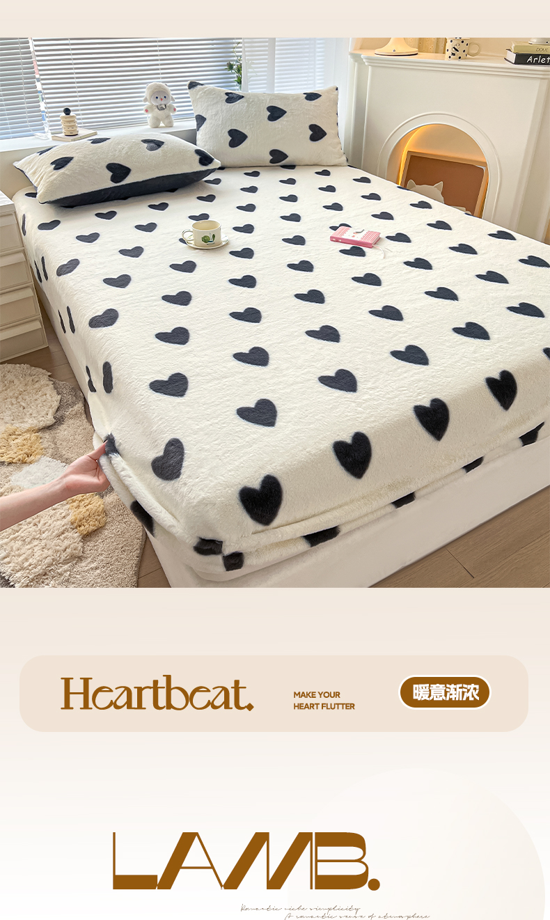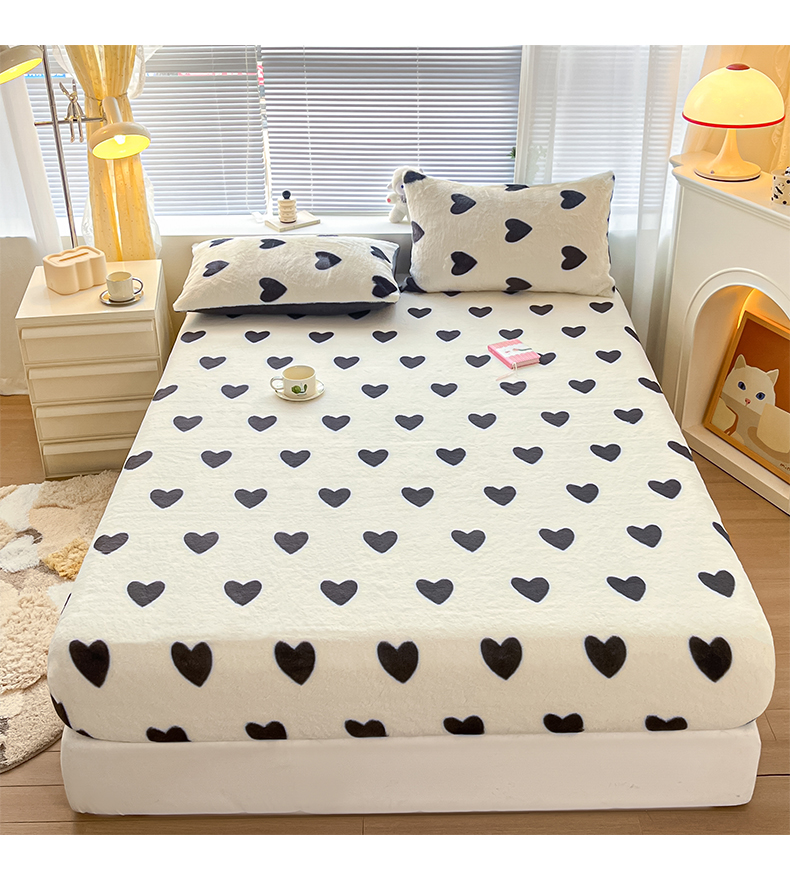商品名称:雅居纺家纺 2025新款高克重兔绒印花单床笠-爱心 爱心-灰