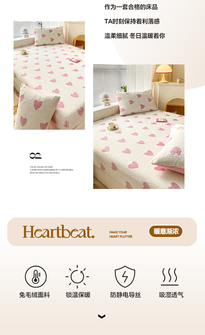 商品名称:雅居纺家纺 2025新款高克重兔绒印花单枕套-爱心 爱心-紫