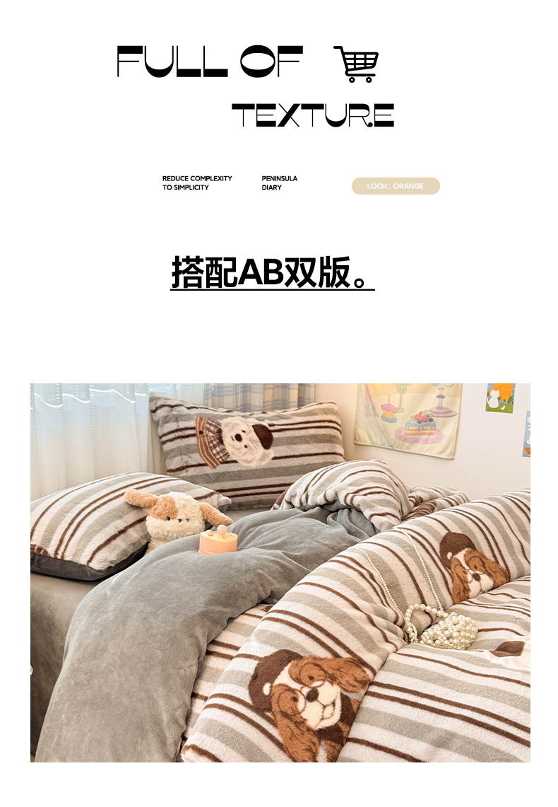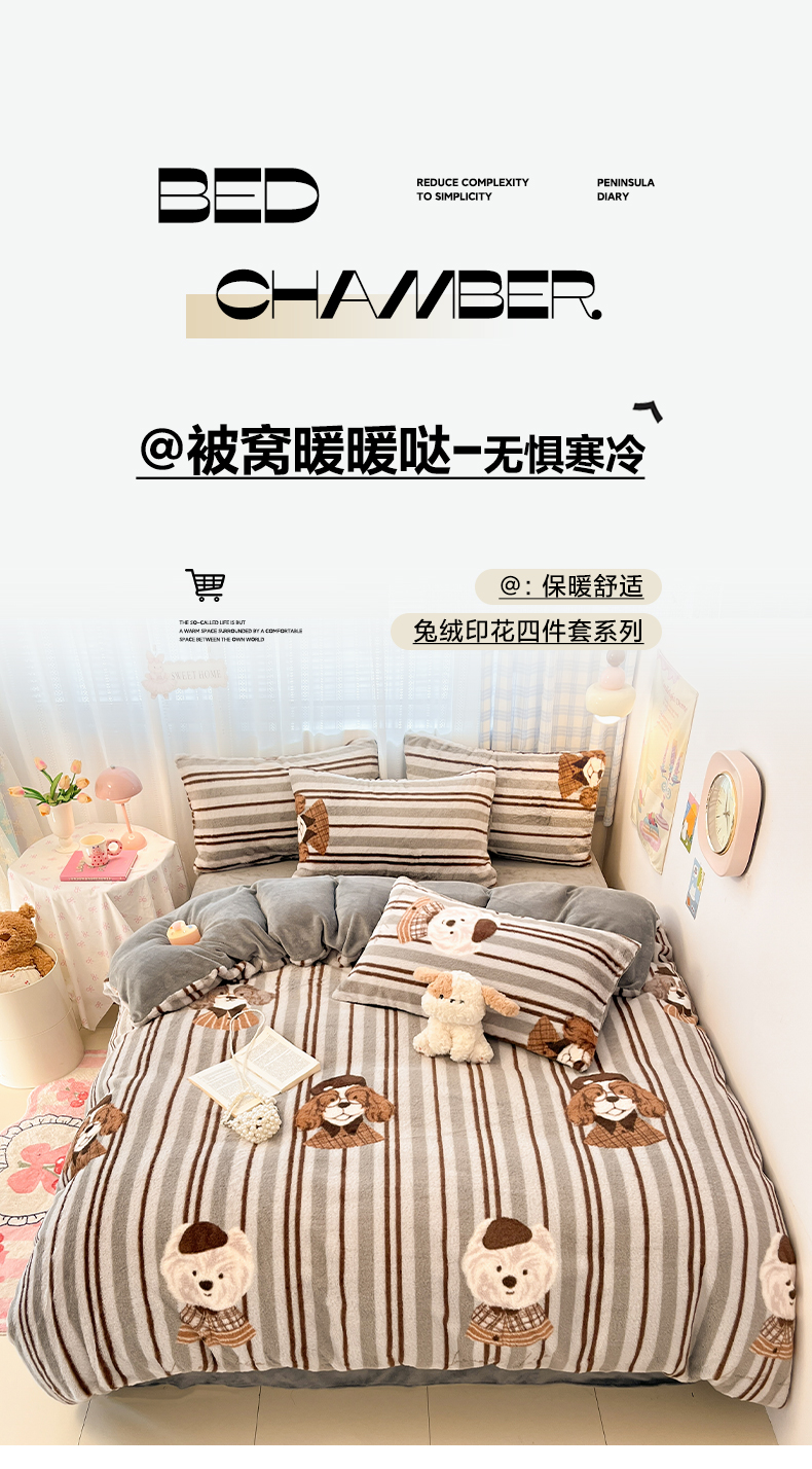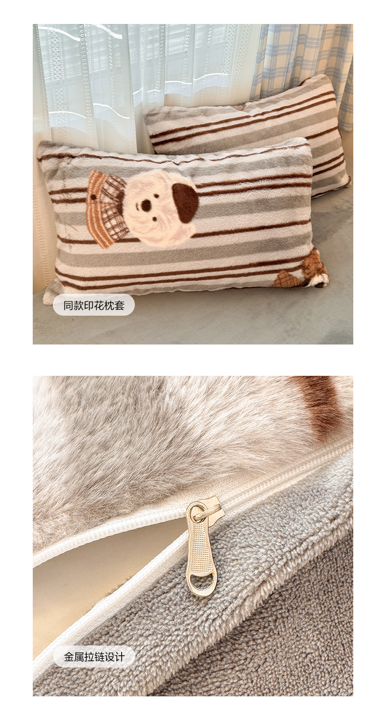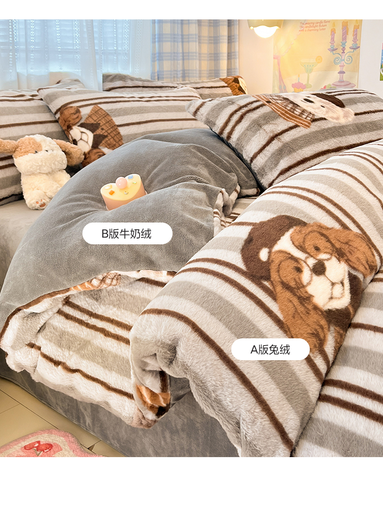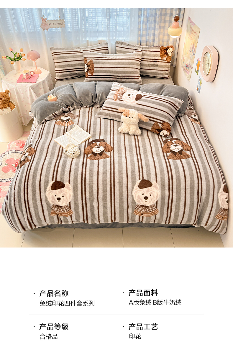 商品名称:雅居纺家纺 2025新款保暖舒适兔绒印花四件套 博士狗