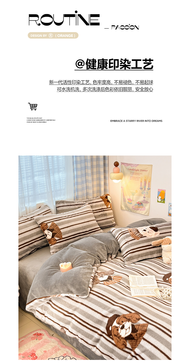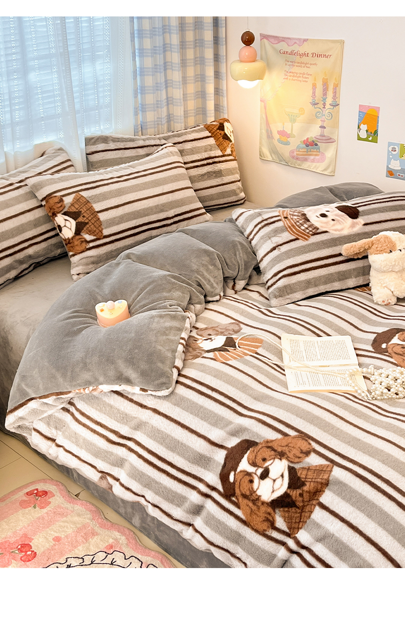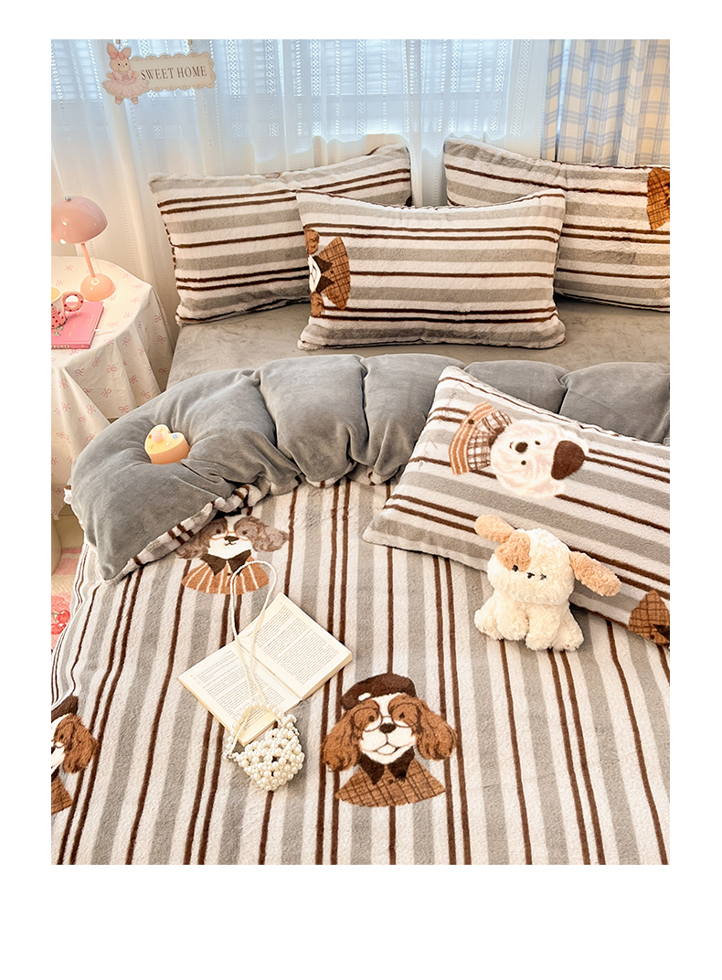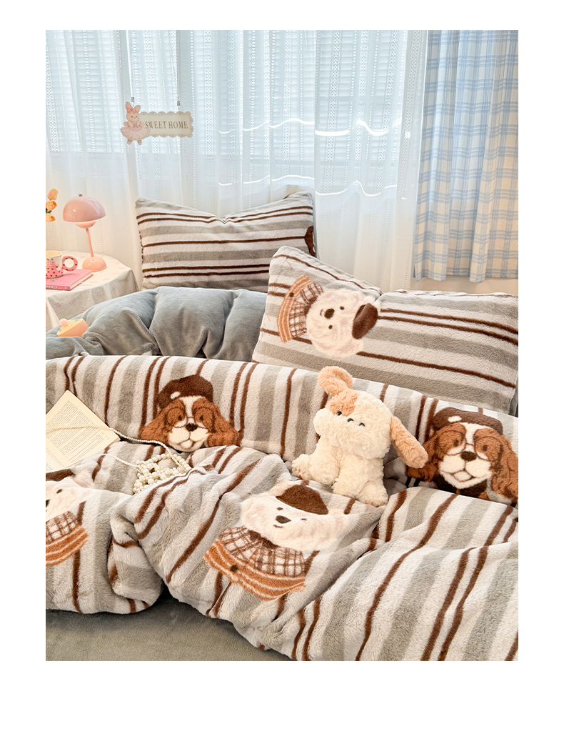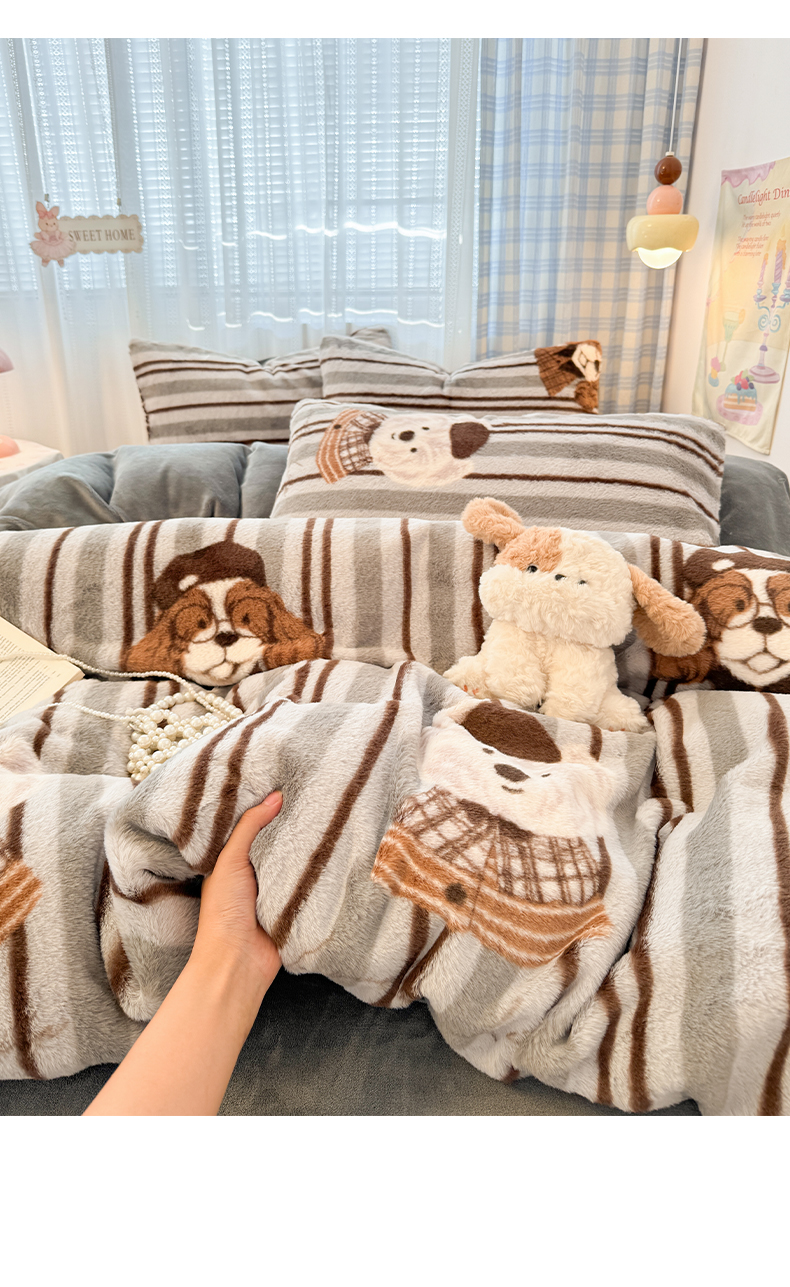 雅居纺家纺 2025新款保暖舒适兔绒印花四件套 博士狗