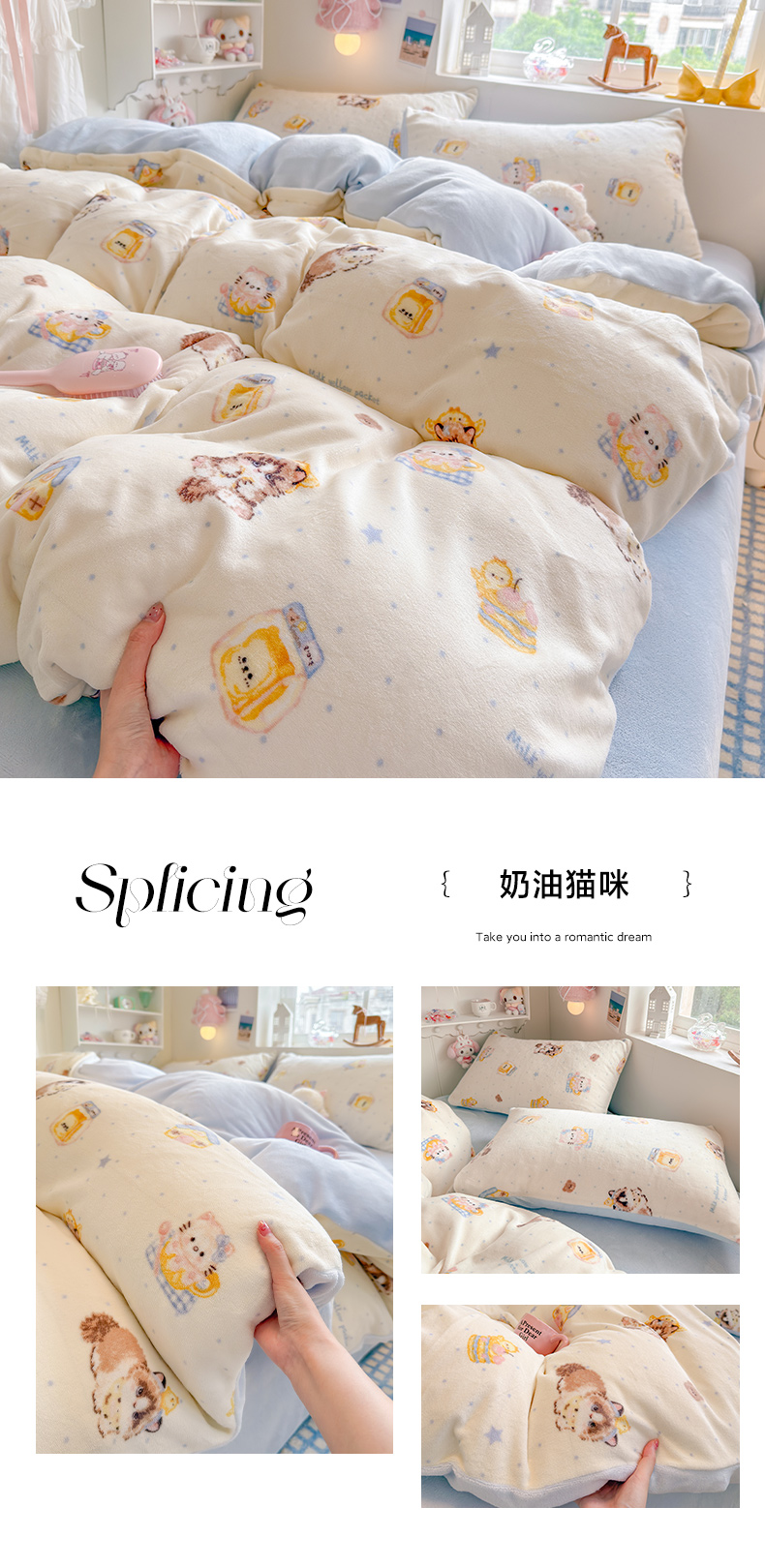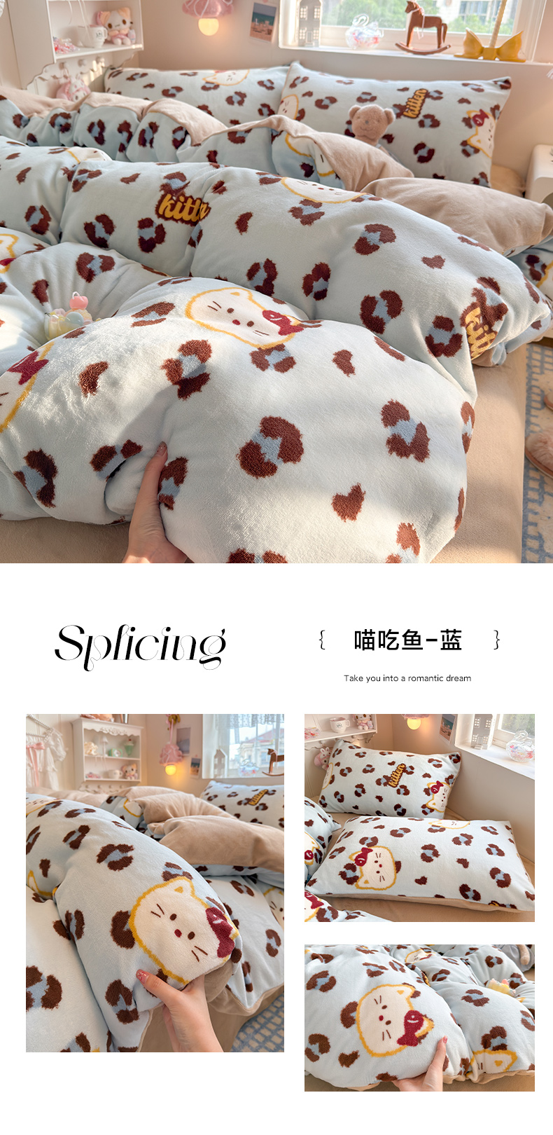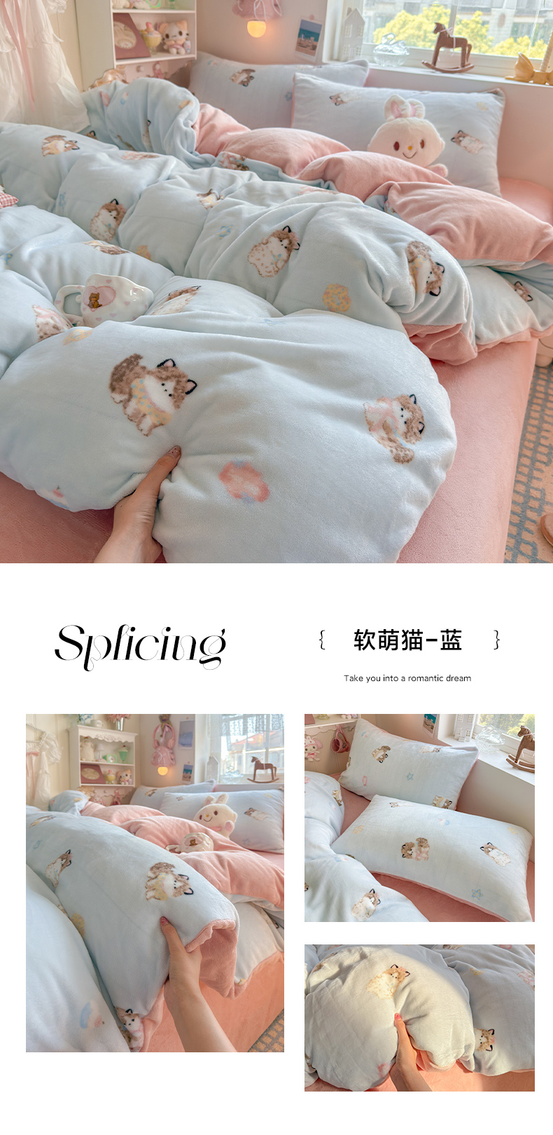 当前位置: 91家纺网 > 商品网购 > 床品套件 > 四件套 > 牛奶绒四件套 > 罗亿家纺 2025新款ins小清新少女奶油卡通可爱加厚200克牛奶绒四件套【3.6公斤】(小红书推荐) 喵吃鱼-蓝