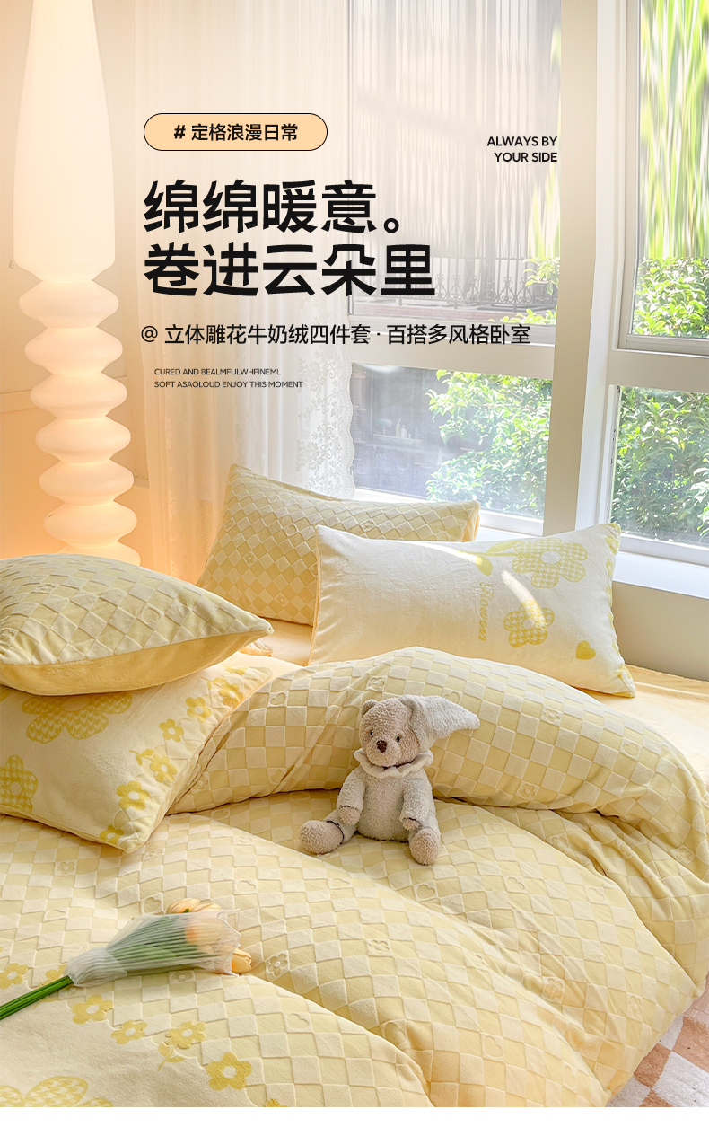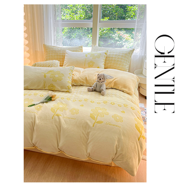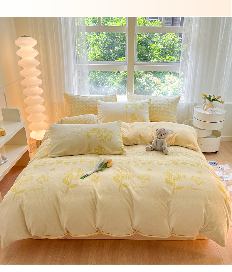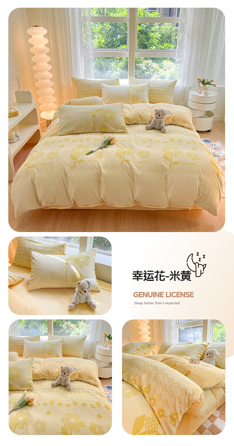 雅居纺家纺 2025新款立体雕花牛奶绒四件套-幸运花系列 幸运花-米黄