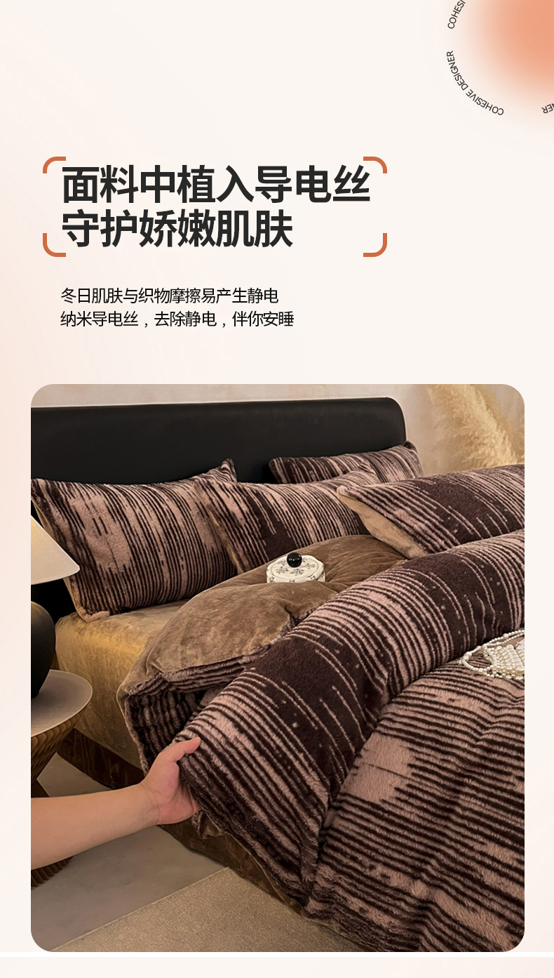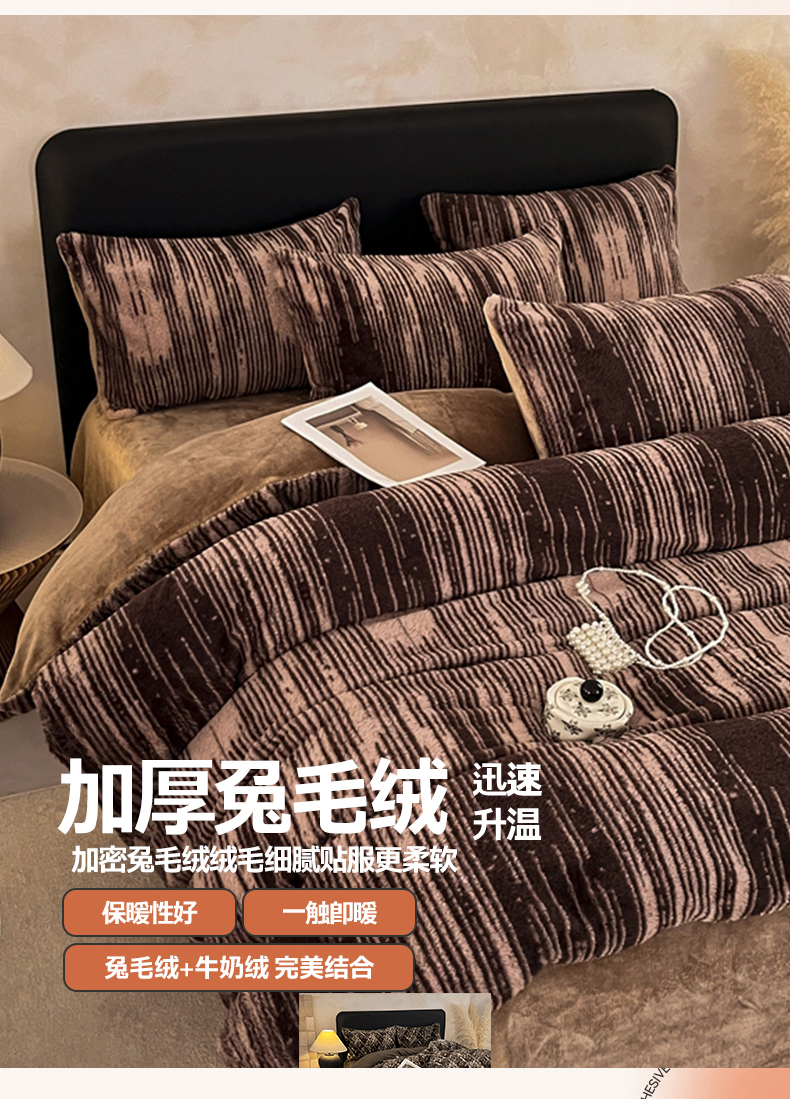 商品名称:铠畅家纺 2025新款美拉德风格兔毛绒床单四件套 美拉德-情缘咖