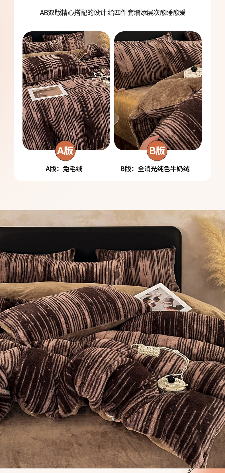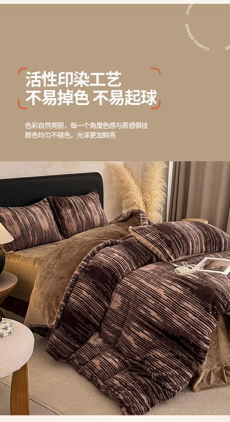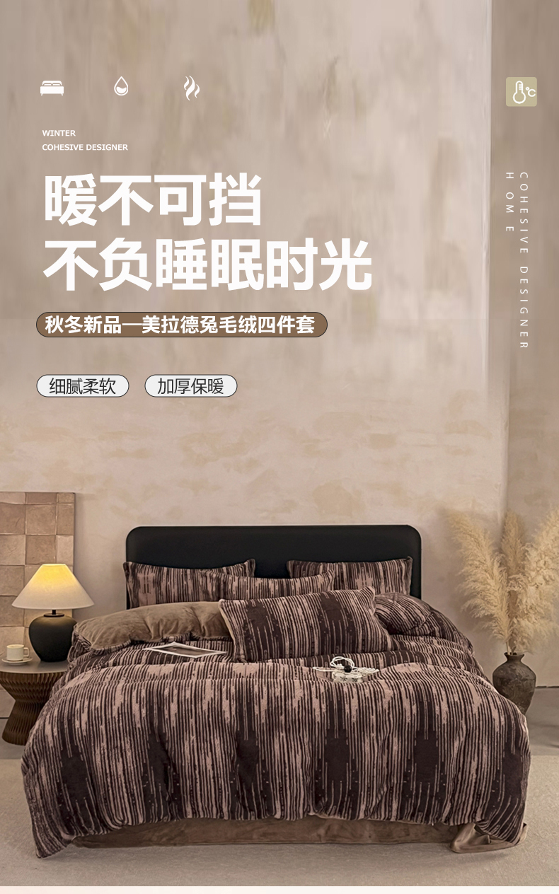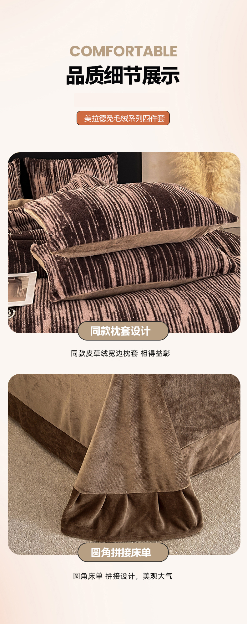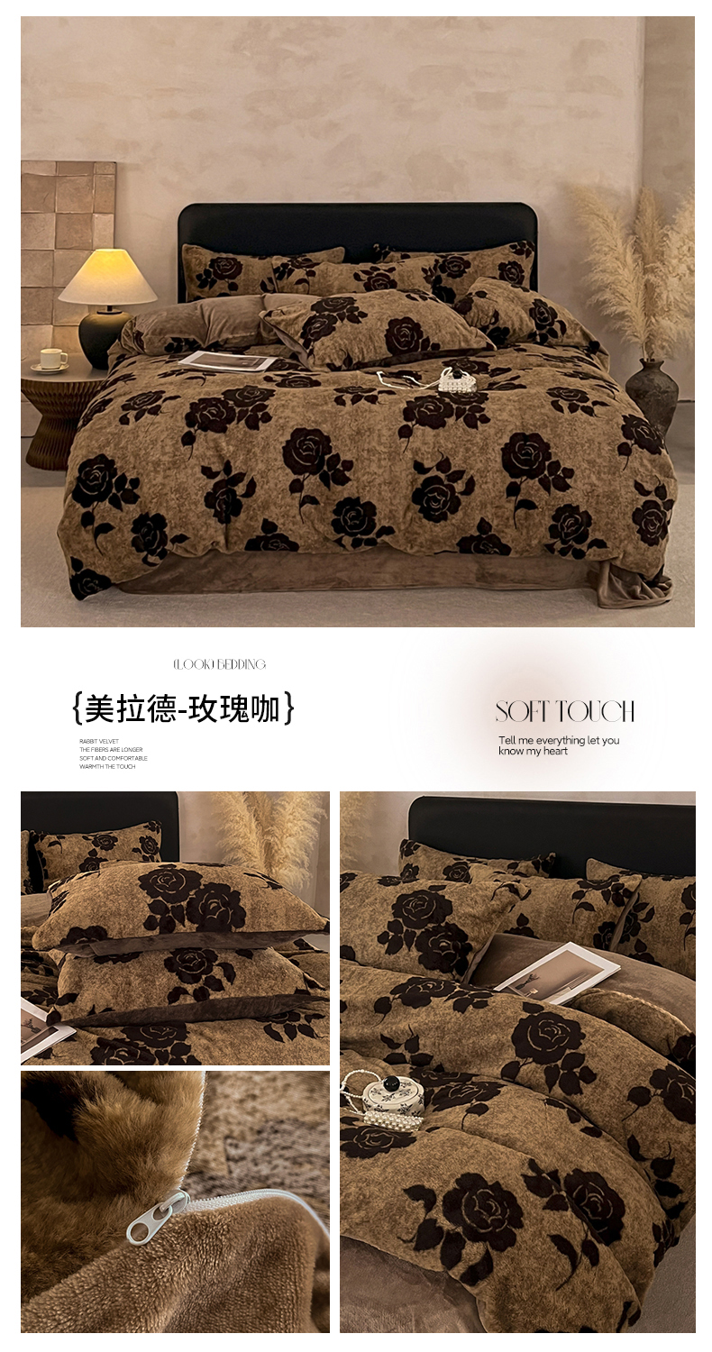 铠畅家纺 2025新款美拉德风格兔毛绒床单四件套 美拉德-情缘咖