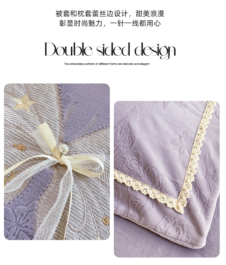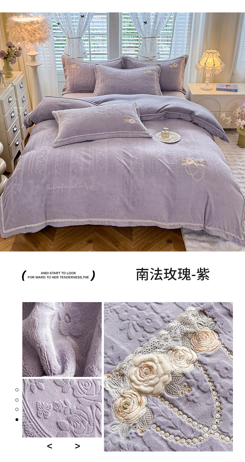 (总)艾唯希家纺 2025新款韩式牛奶雕花绒工艺全消光立体刺绣公主风四件套-忆江南,忆江南-粉,忆江南-蓝,忆江南-紫