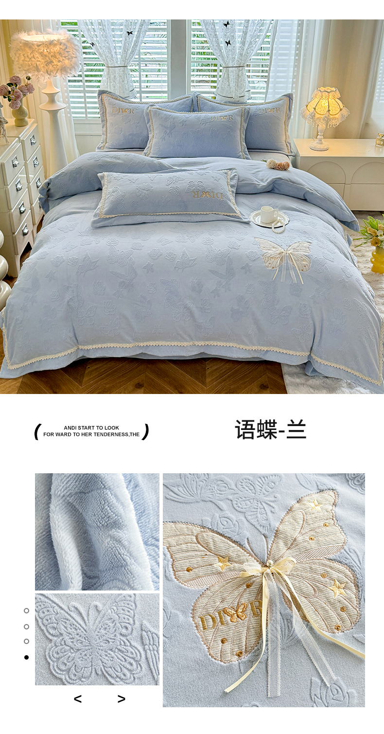(总)艾唯希家纺 2025新款韩版雕花绒工艺四件套全消光牛奶绒-语蝶系列,南法玫瑰-紫,语蝶-兰,语蝶-新粉,南法玫瑰-蓝,南法玫瑰-粉,语蝶-紫