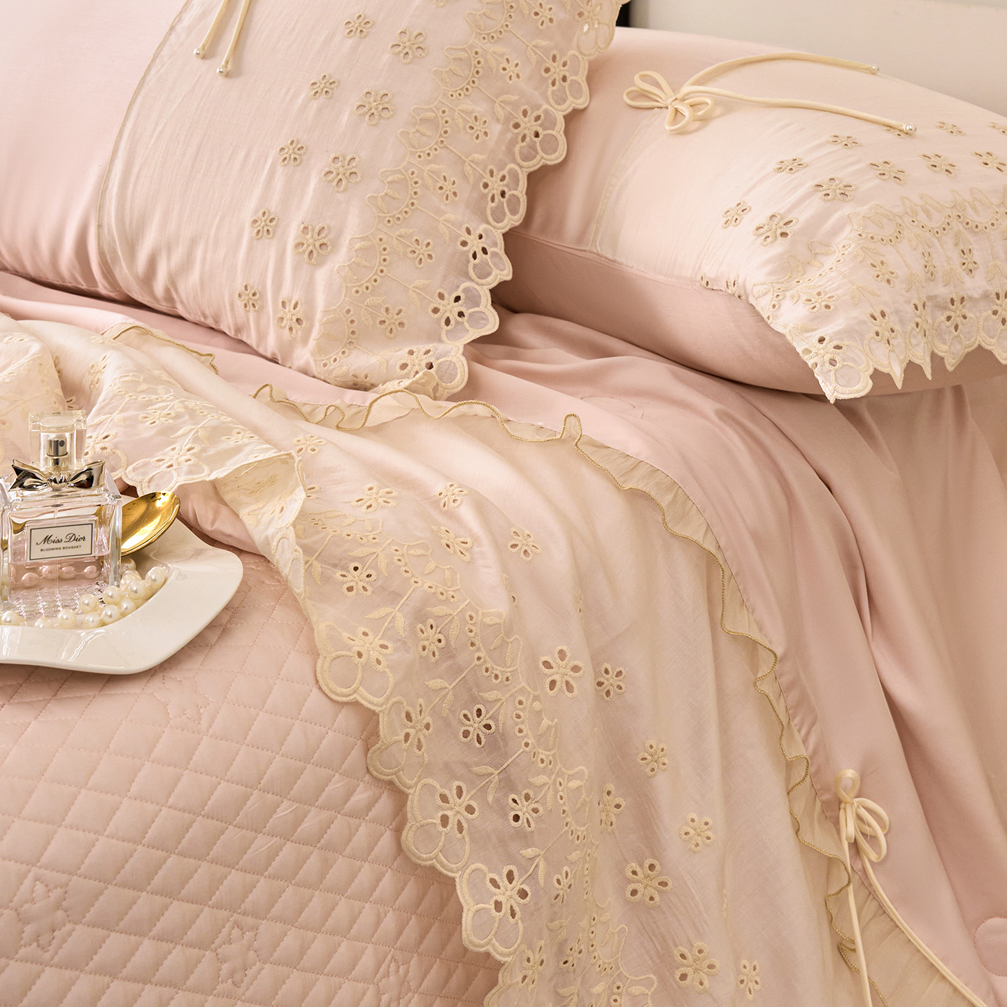 (总)优希家纺 2025新款安雅夏被床盖四件套,粉色,黄色,灰色,卡其