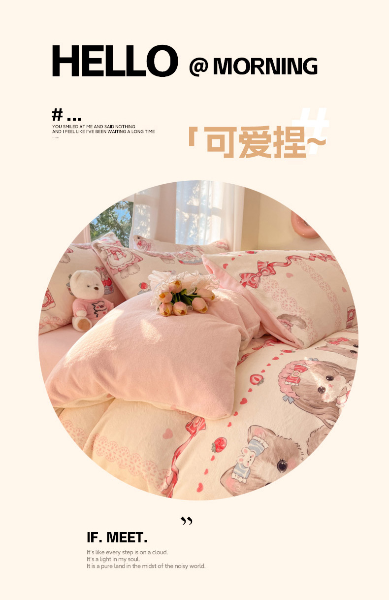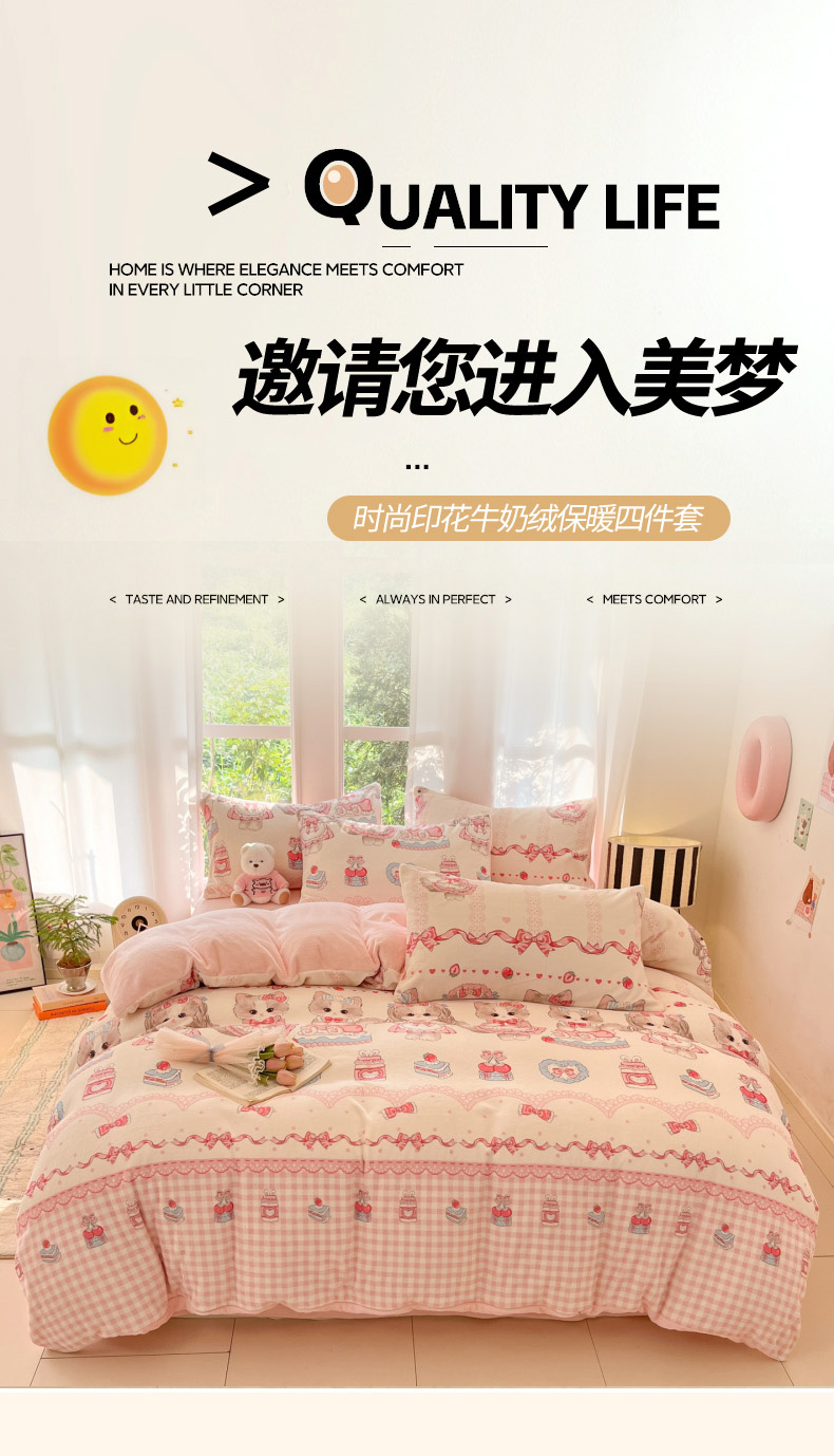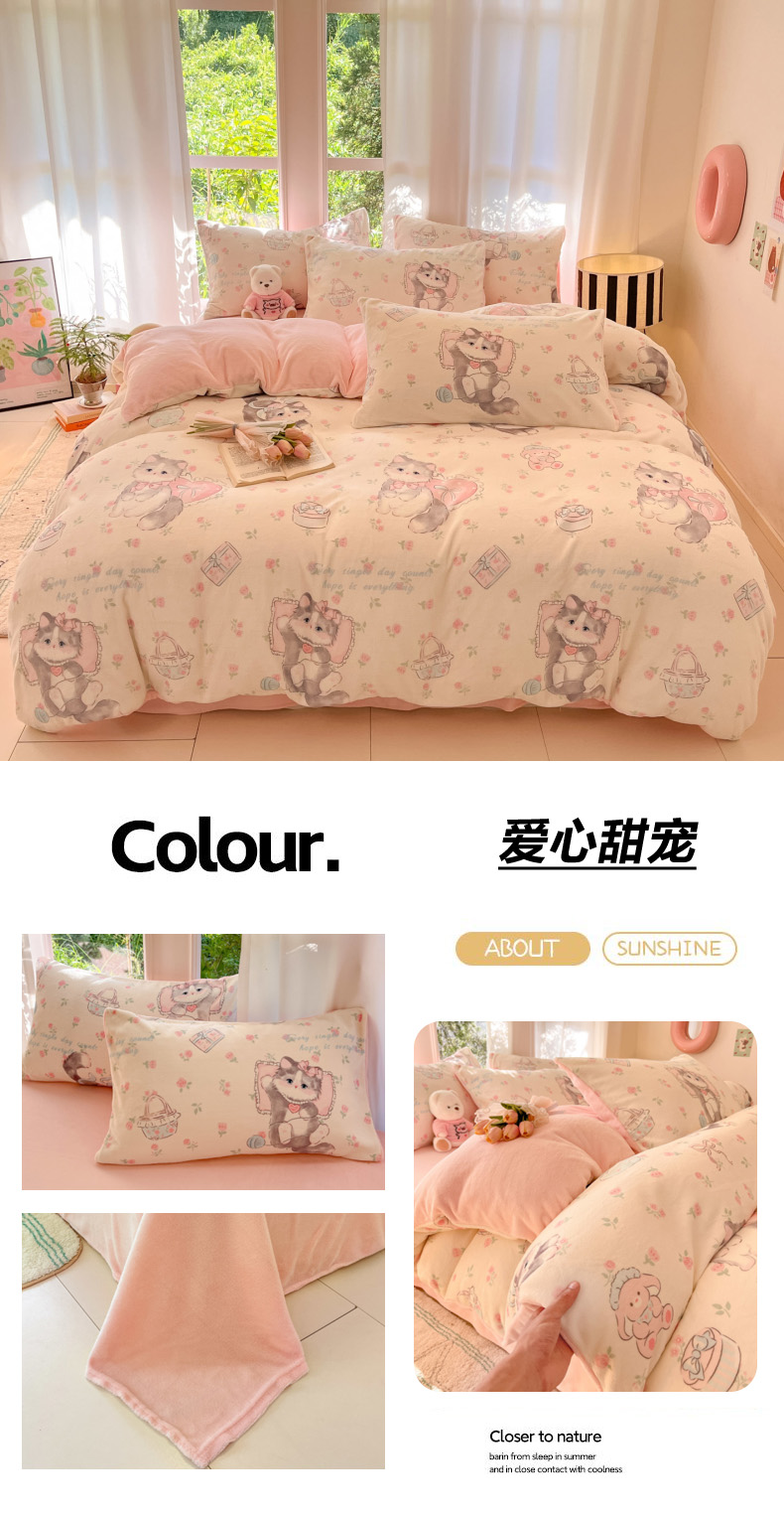 当前位置: 91家纺网 > 商品网购 > 床品套件 > 四件套 > 牛奶绒四件套 > 慕澄家纺 2025新款小清新牛奶绒印花四件套 粉色喵喵