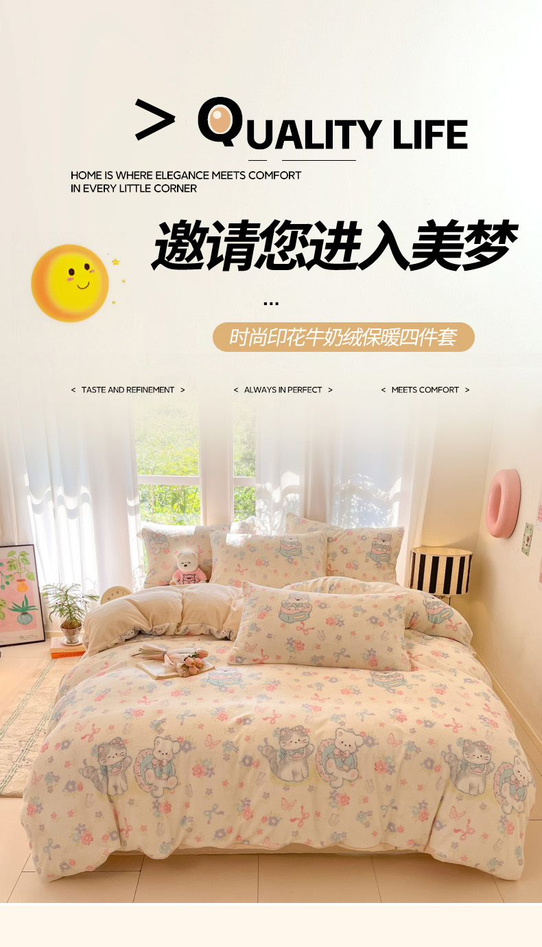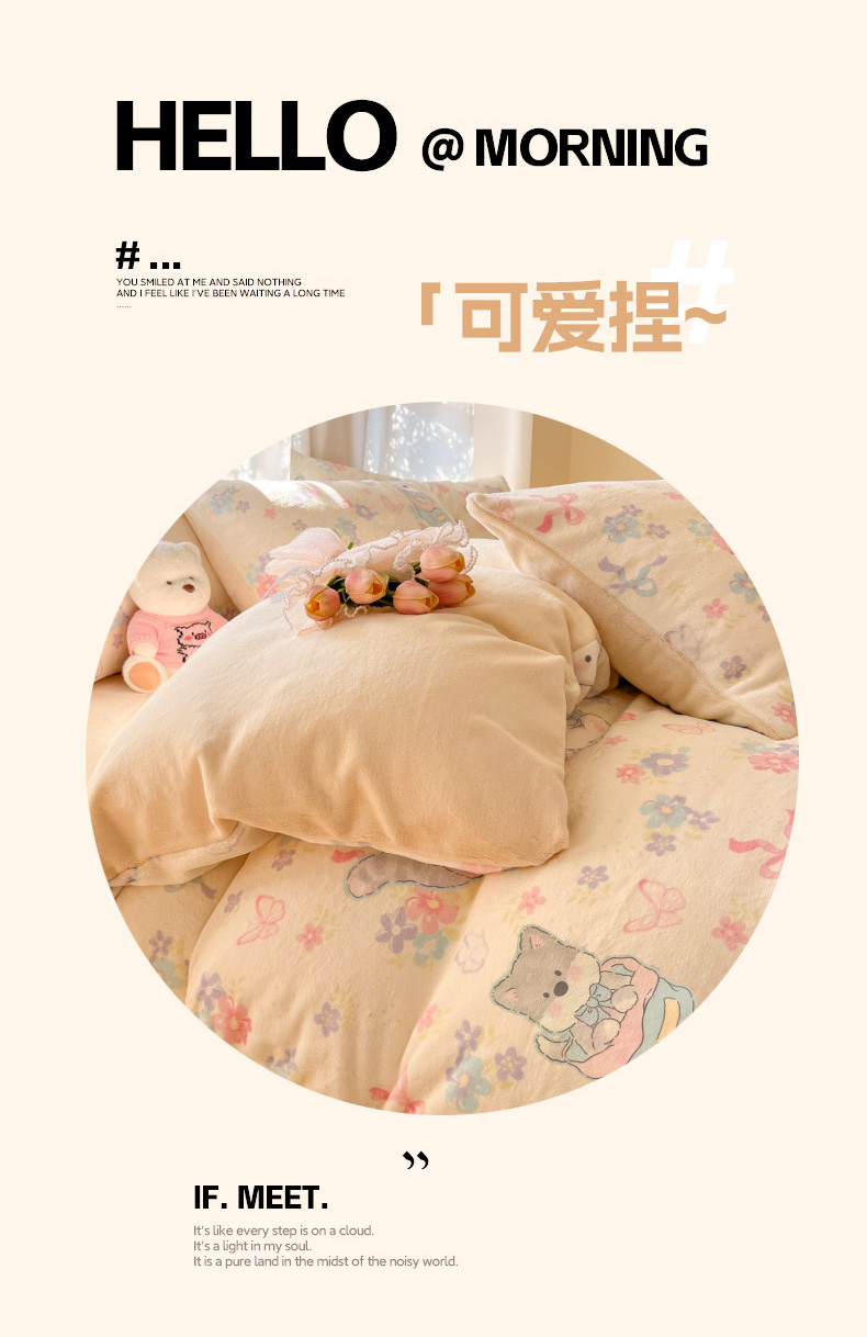 当前位置: 91家纺网 > 商品网购 > 床品套件 > 四件套 > 牛奶绒四件套 > 慕澄家纺 2025新款小清新牛奶绒印花四件套 奶奶可爱