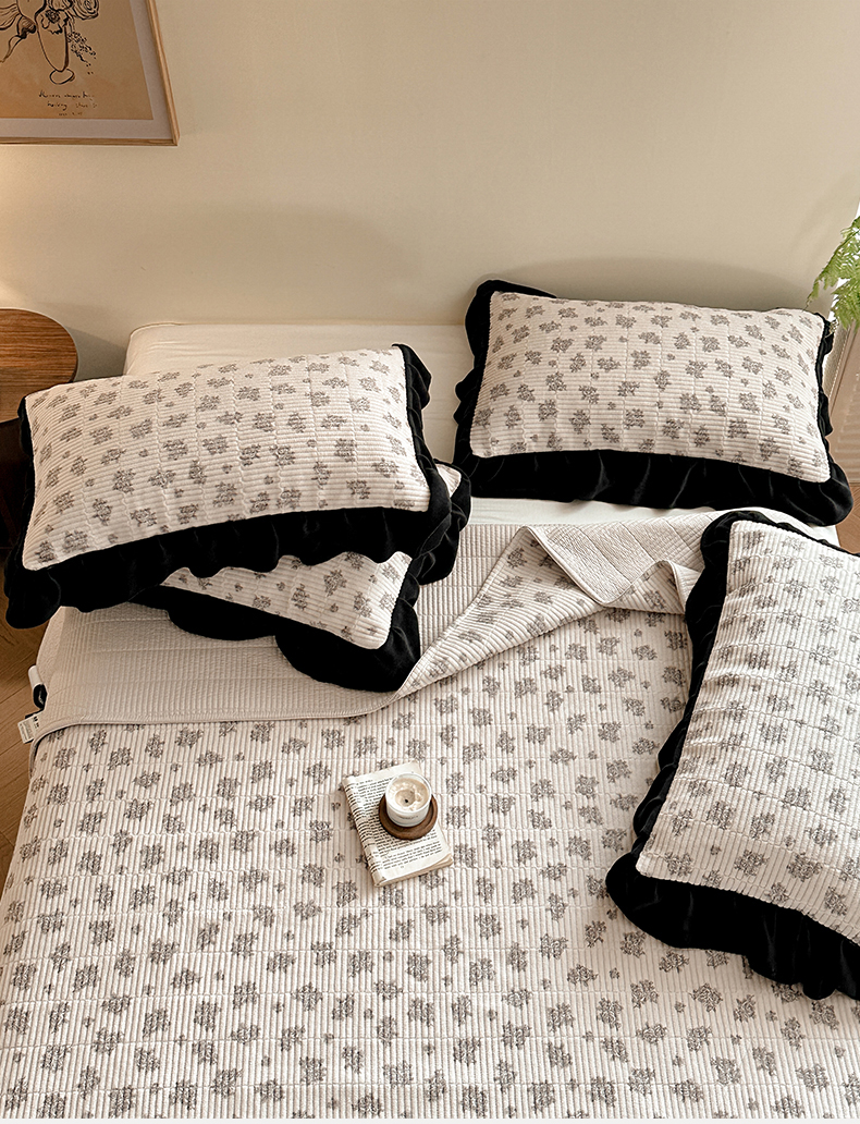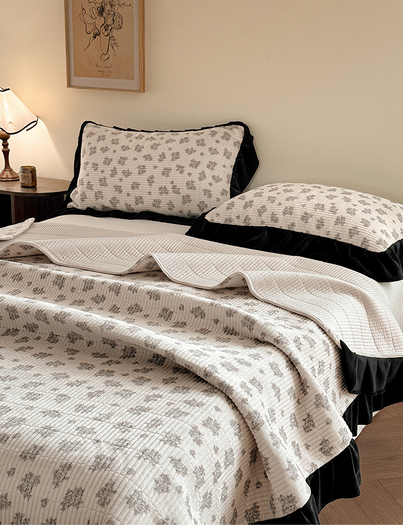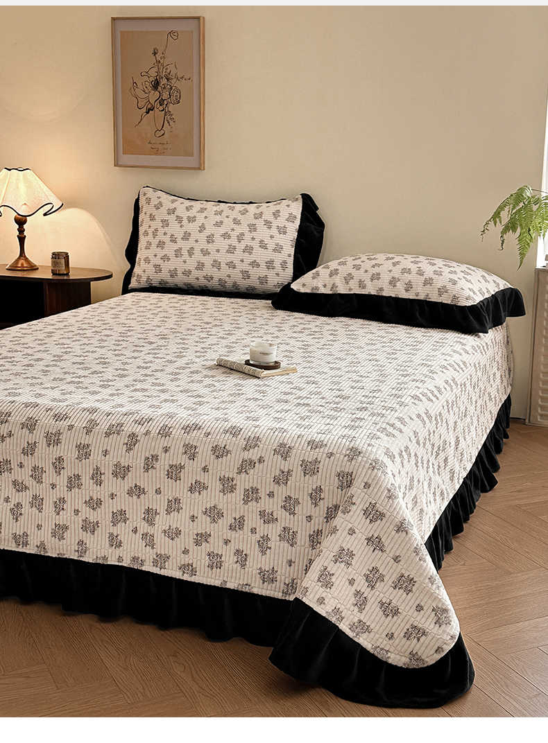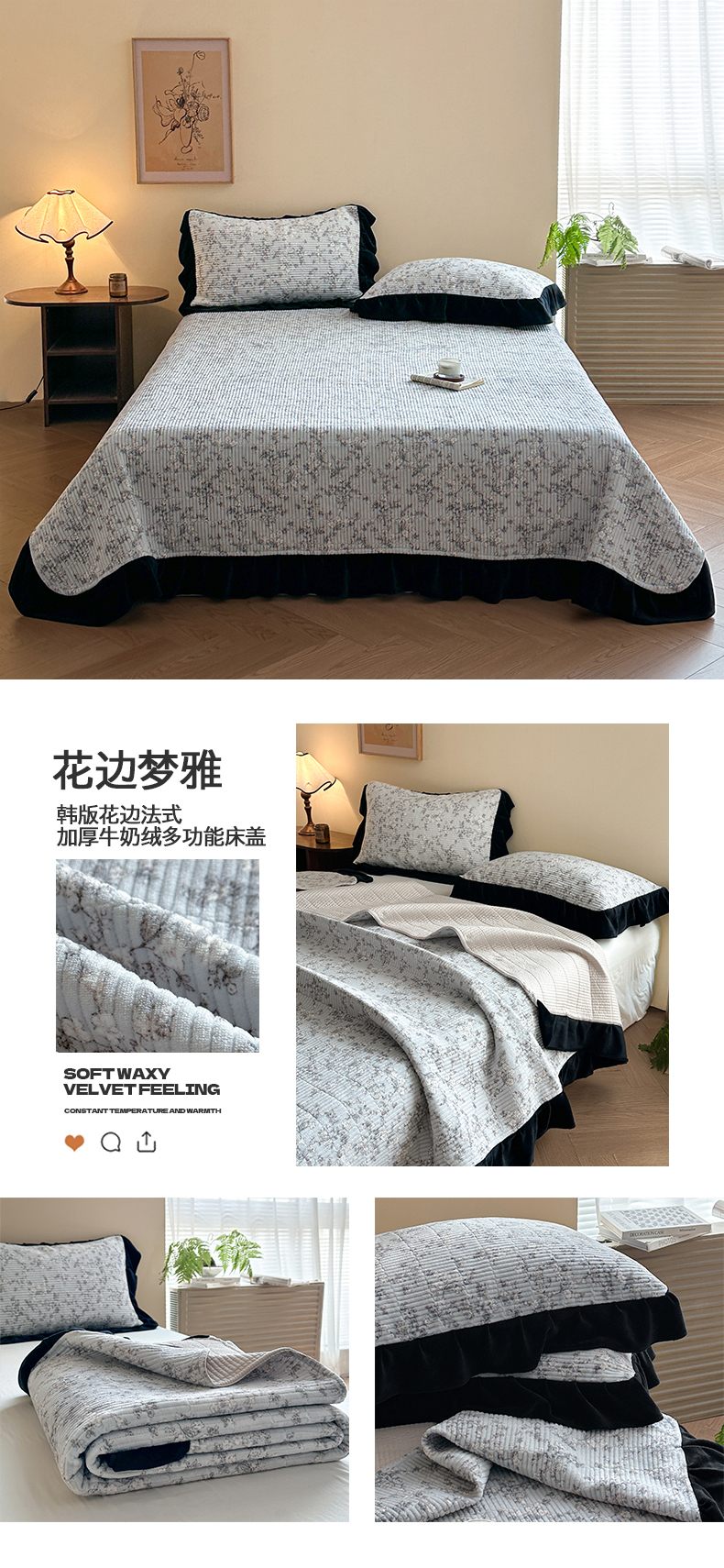 桃心家居 2025新款韩版花边法式花卉碎花加厚牛奶绒多功能床盖单件单床盖床盖三件套单品 绒床盖-花边清香