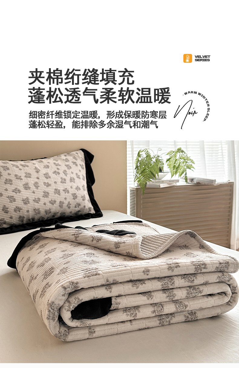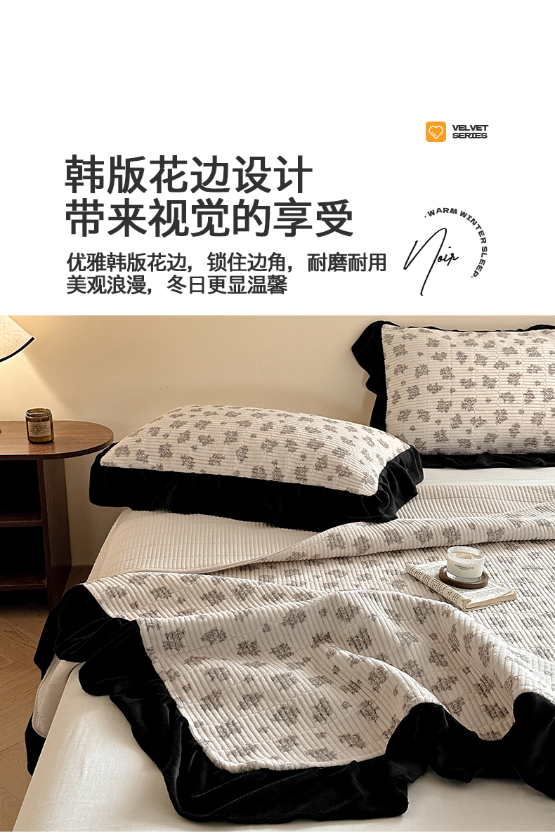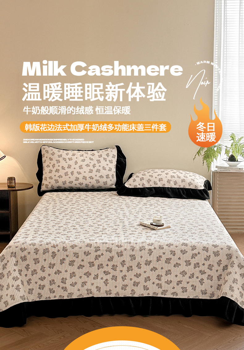 商品名称:桃心家居 2025新款韩版花边法式花卉碎花加厚牛奶绒多功能床盖单件单床盖床盖三件套单品 绒床盖-花边清香