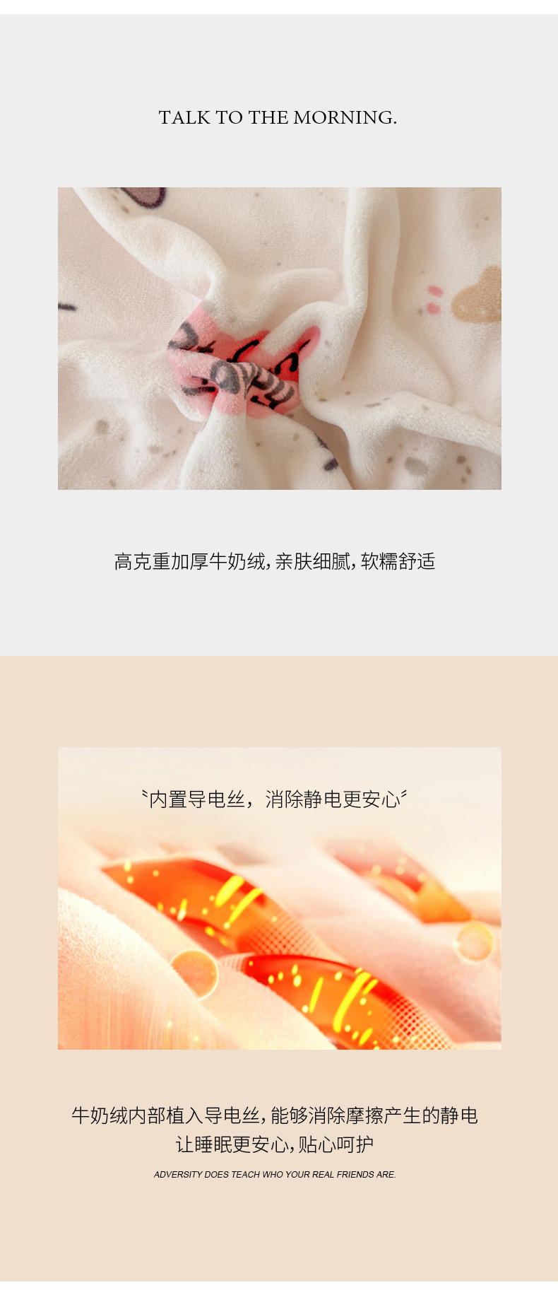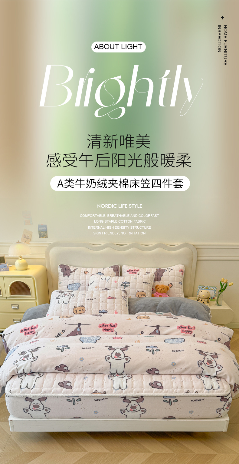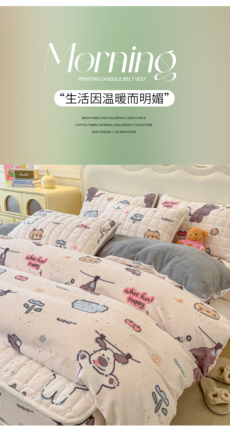 商品名称:LIFE.丽芙 2025秋冬新款A类牛奶绒加厚夹棉床笠+被套组合四件套 萌喵酷狗