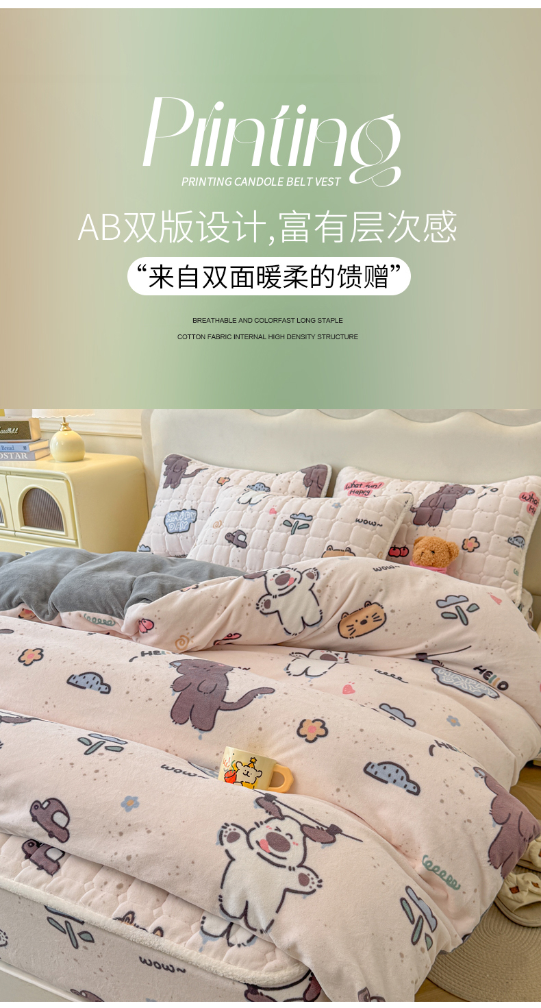 LIFE.丽芙 2025秋冬新款A类牛奶绒加厚夹棉床笠+被套组合四件套 萌喵酷狗
