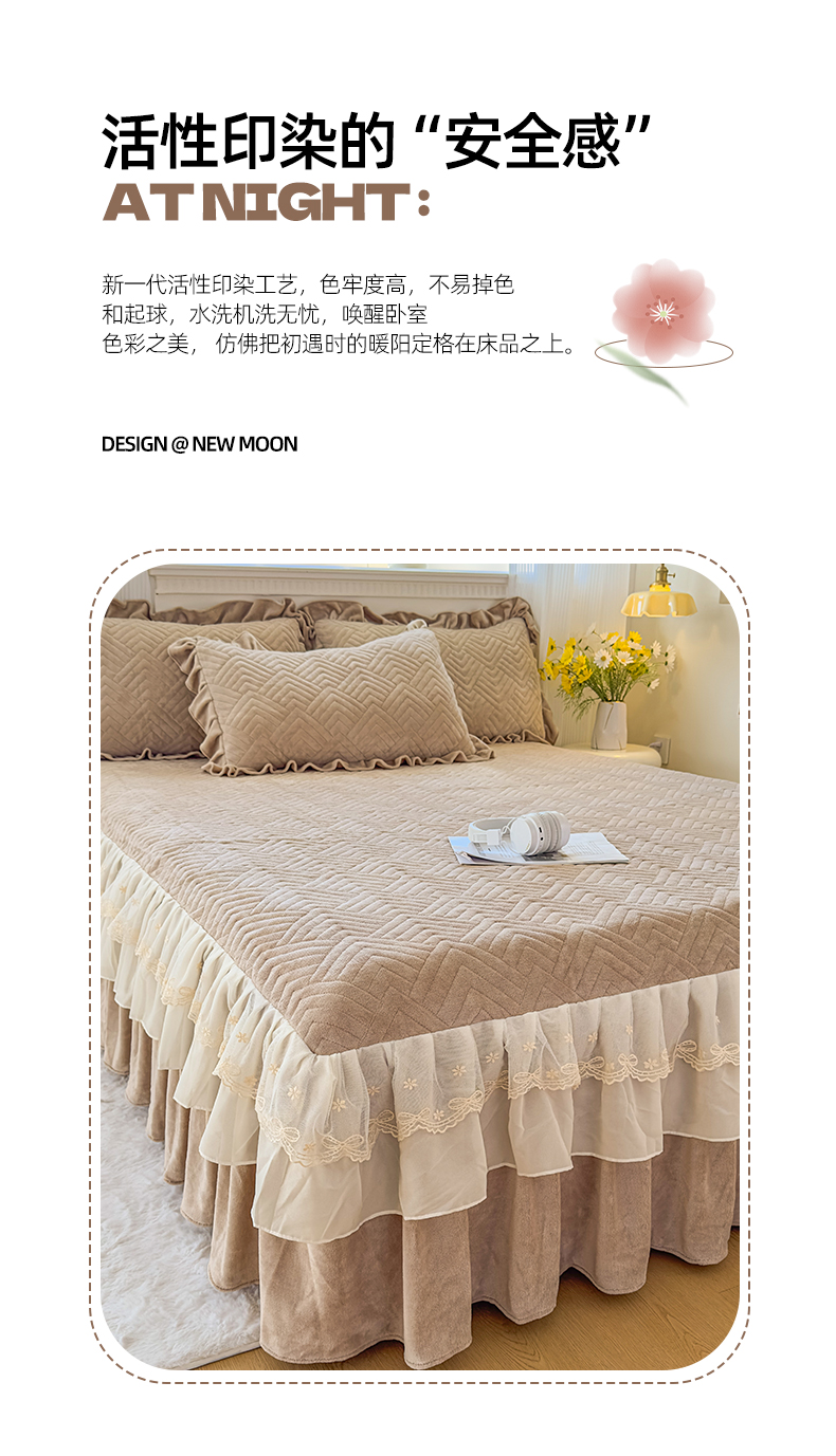 (总)家之硕家纺 2025新款立体雕花可拆洗牛奶绒单床裙系列,爱莎粉,安妮绿,彩虹糖-浅蓝,花韵,秘密花园,田园生活