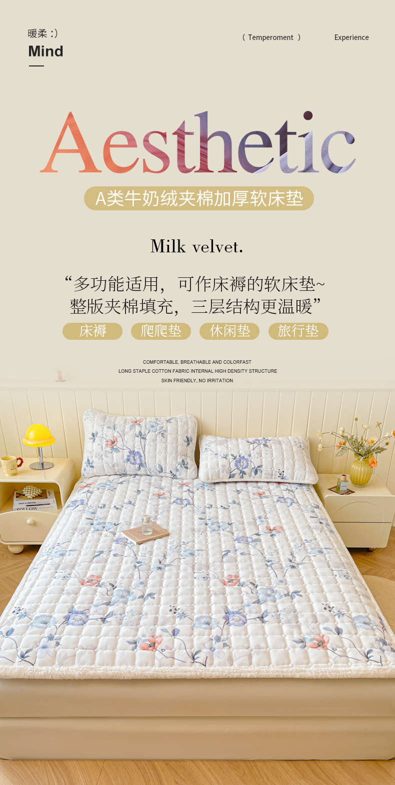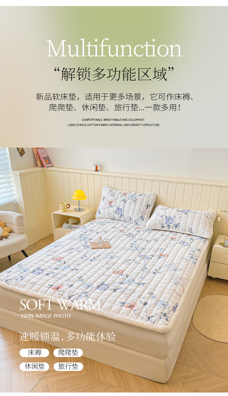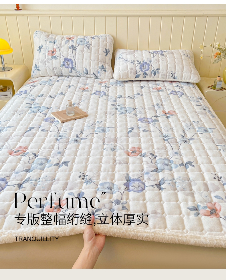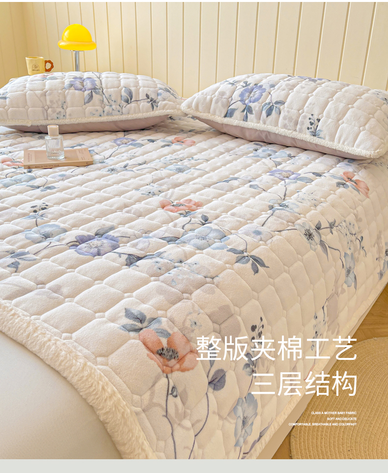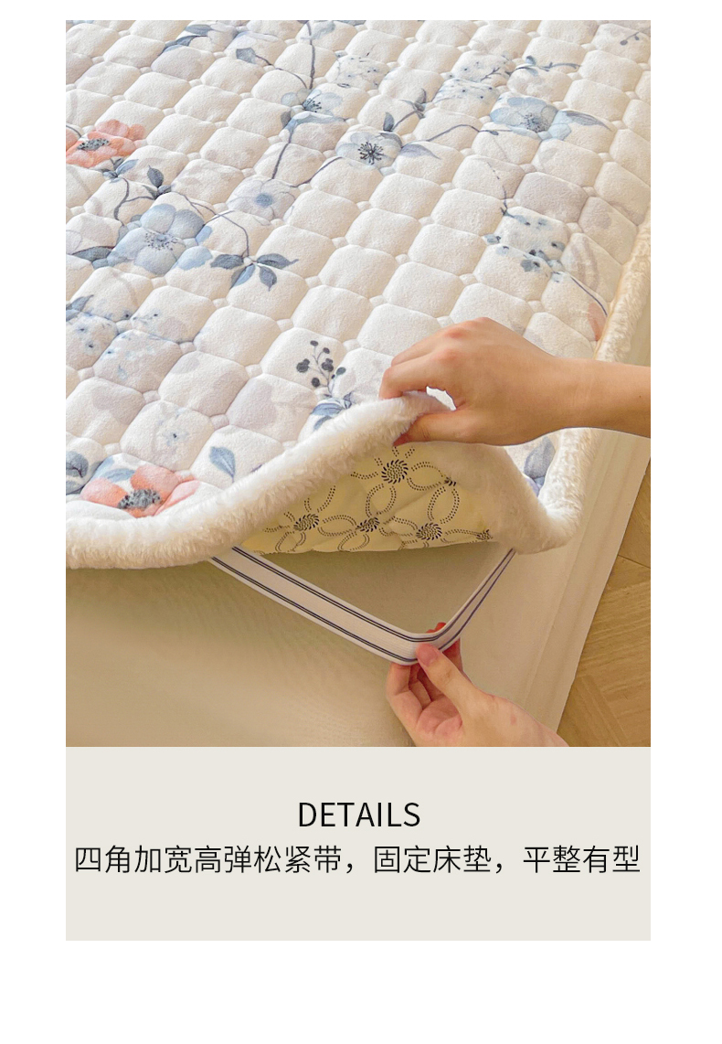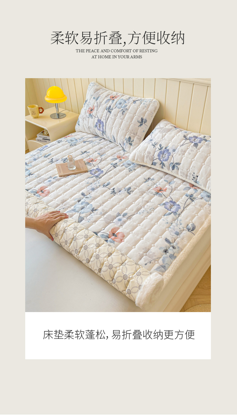 • 91家纺网 家纺一手货源 找家纺 LIFE.丽芙 2025秋冬新款牛奶绒加厚夹棉床垫床护垫单件印花卡通小清新床褥床垫子三件套 司藤
