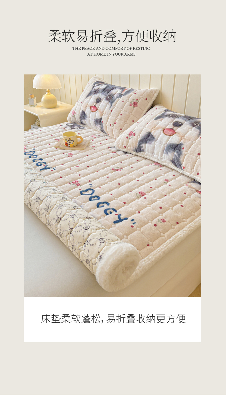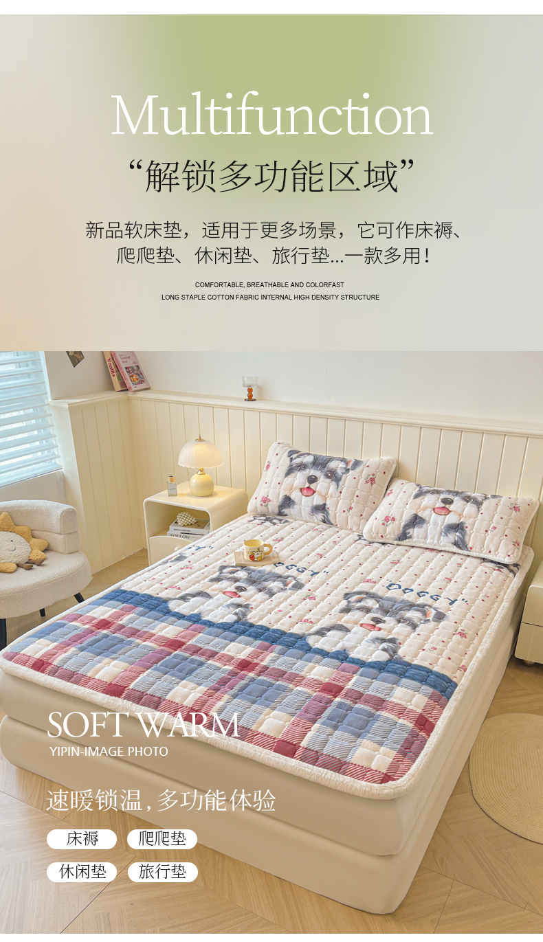 当前位置: 91家纺网 > 商品网购 > 床垫/床褥 > LIFE.丽芙 2025秋冬新款牛奶绒加厚夹棉床垫床护垫单件印花卡通小清新床褥床垫子三件套 修狗