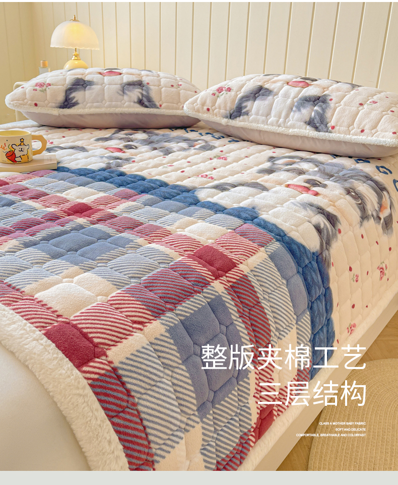 • 91家纺网 家纺一手货源 找家纺 LIFE.丽芙 2025秋冬新款牛奶绒加厚夹棉床垫床护垫单件印花卡通小清新床褥床垫子三件套 修狗