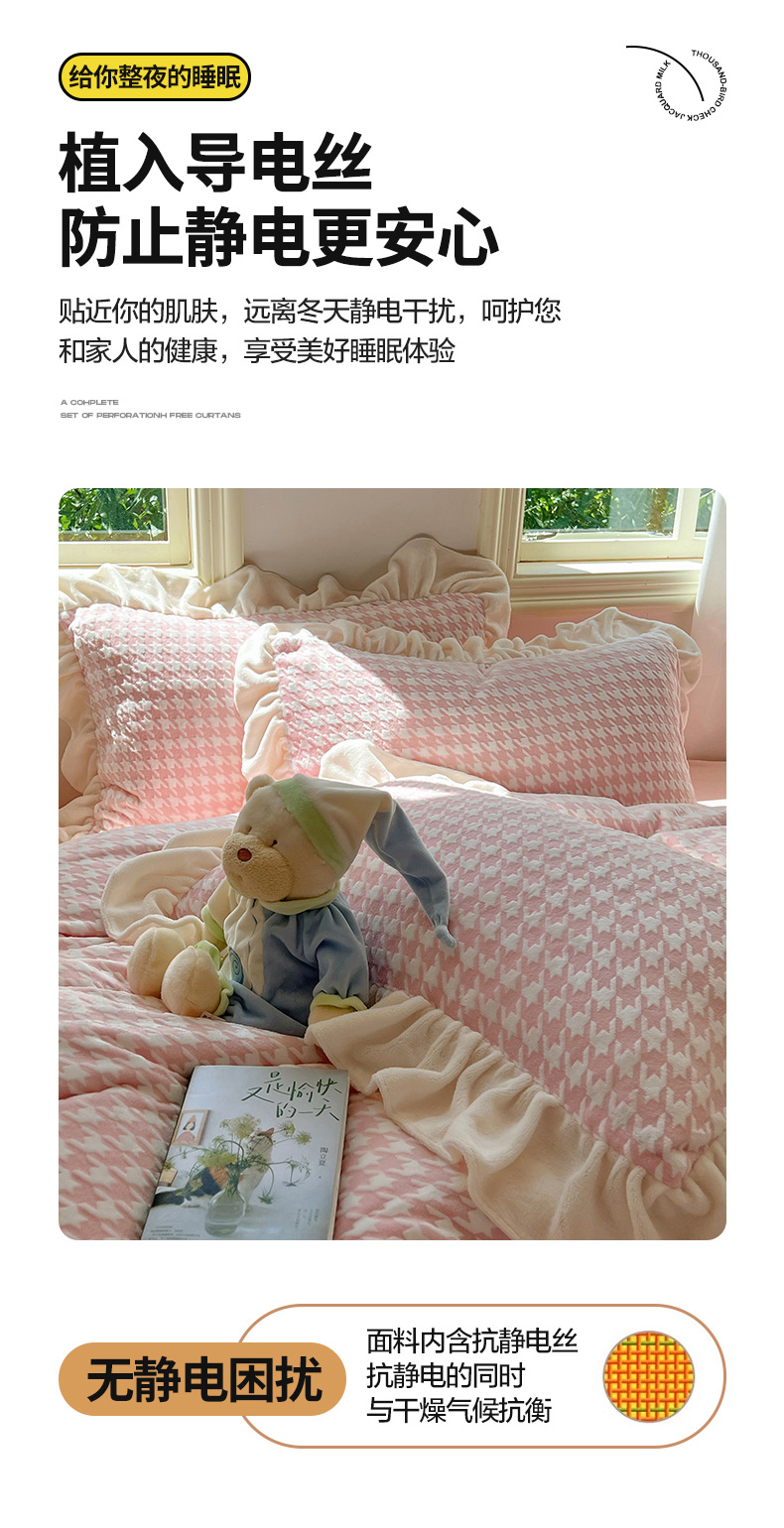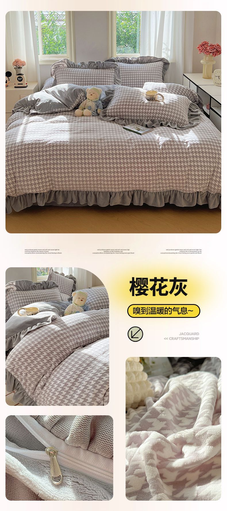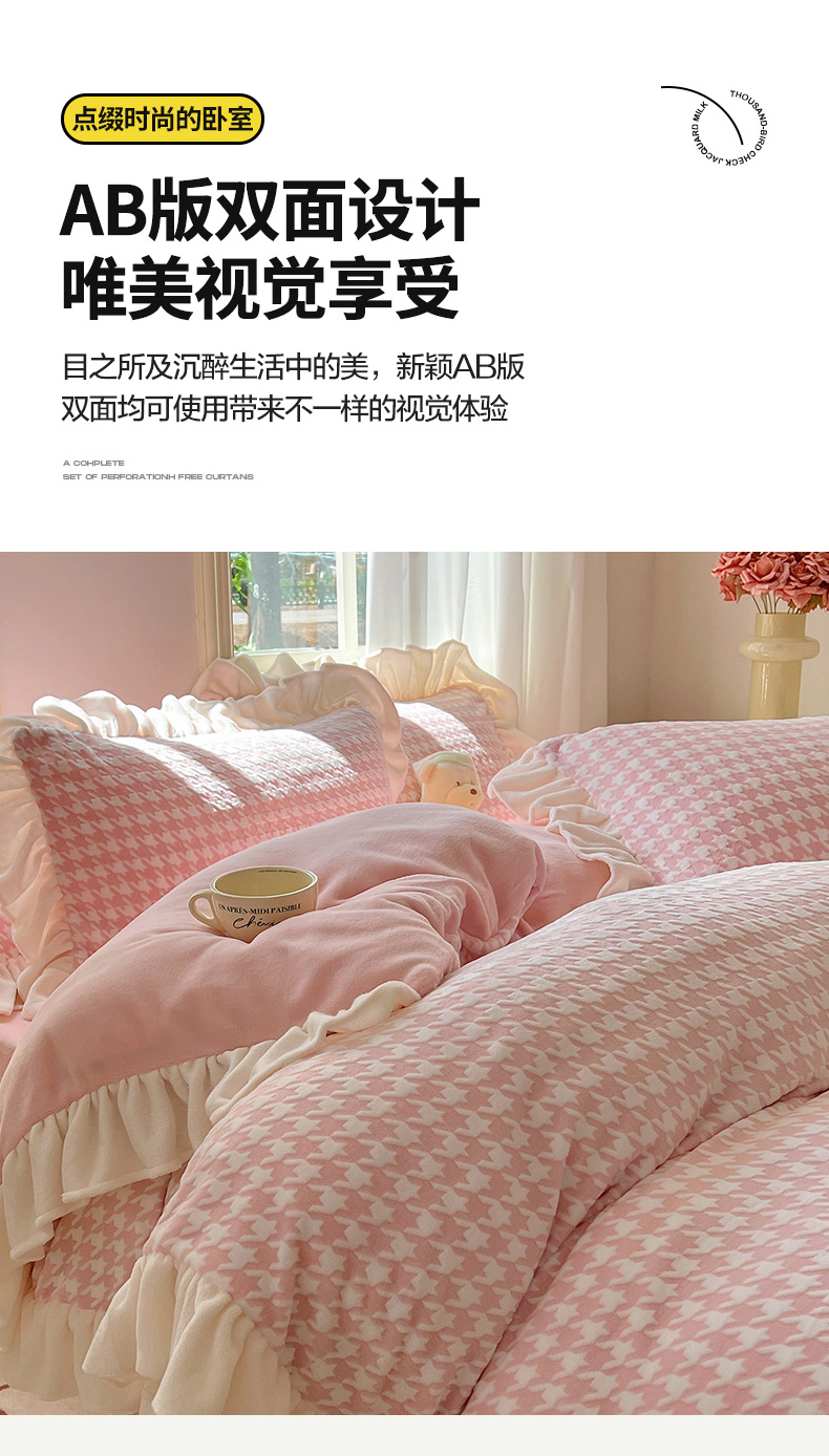 当前位置: 91家纺网 > 商品网购 > 床品套件 > 四件套 > 牛奶绒四件套 > 轻奢坊 2025新款牛奶绒千鸟格烂花花边款四件套-场景二 奶酪蓝