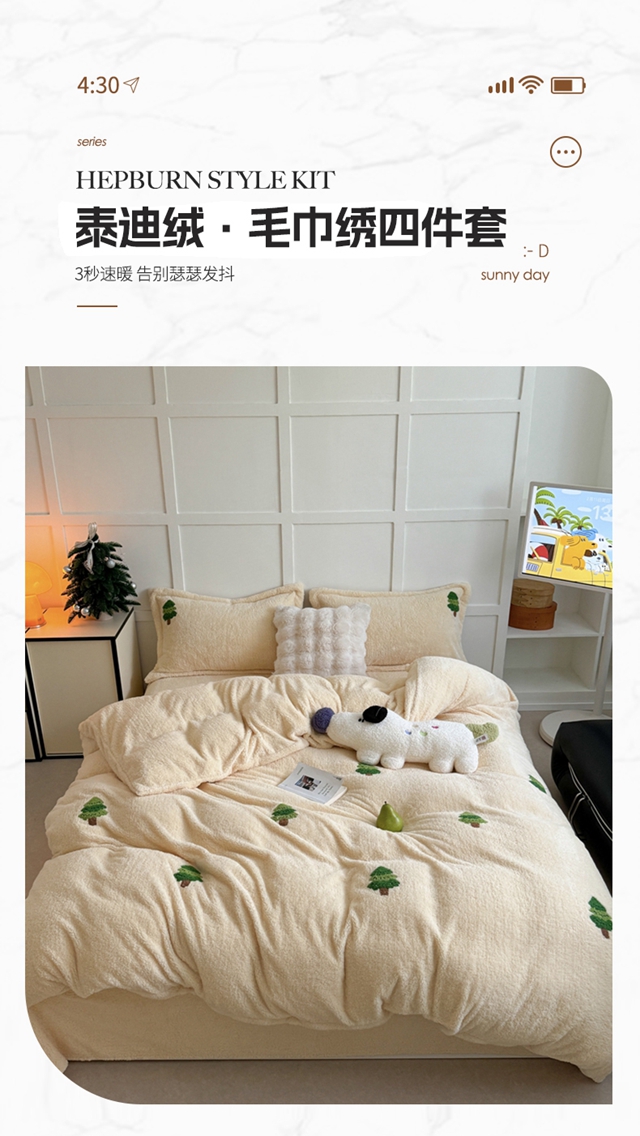 (总)萝莉家纺 2025新款加厚泰迪绒毛巾绣四件套,腊肠狗蓝,可爱狗米白,可爱狗深米,礼帽狗,圣诞树黄,小免蓝,小木马少女粉,小木马水兰,小企鹅豆沙粉,小企鹅米白,小兔茶粉,小熊奶白,熊豆绿,熊猫白,熊猫紫