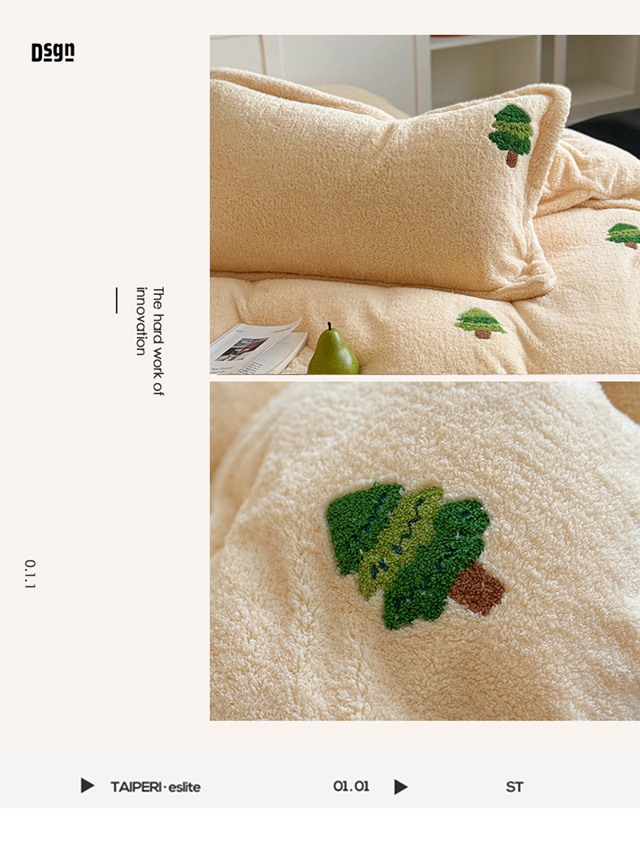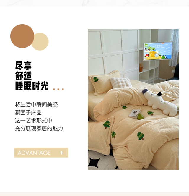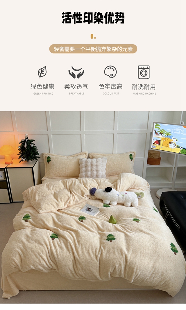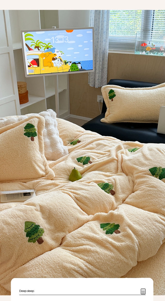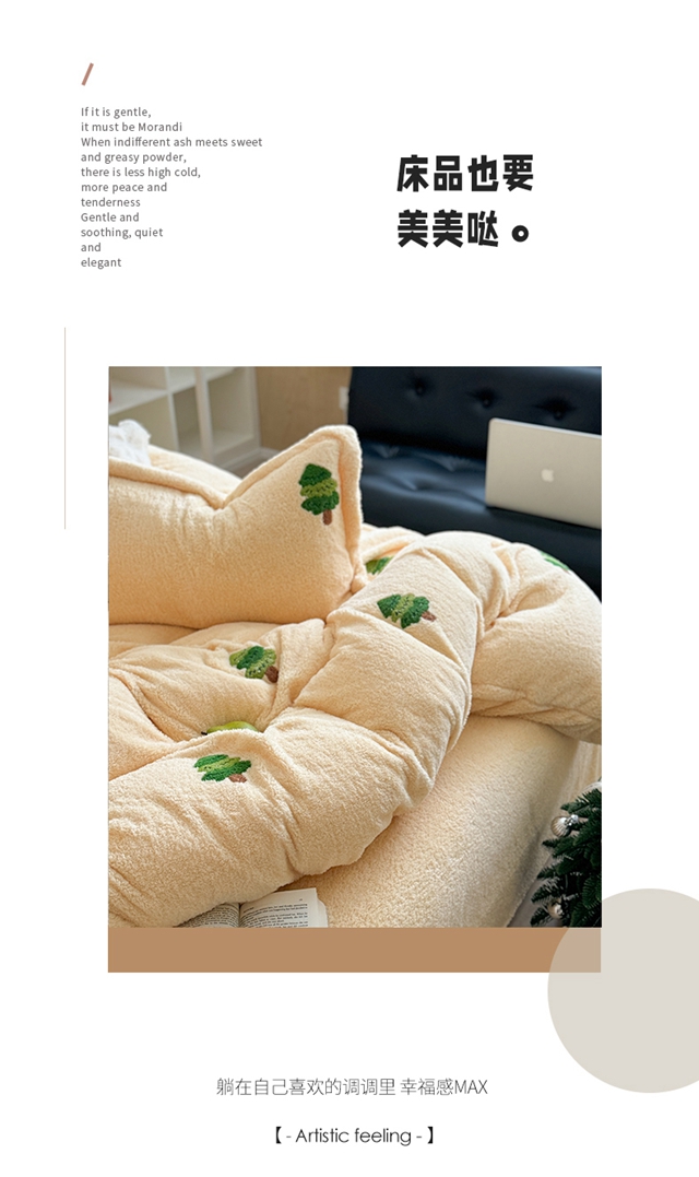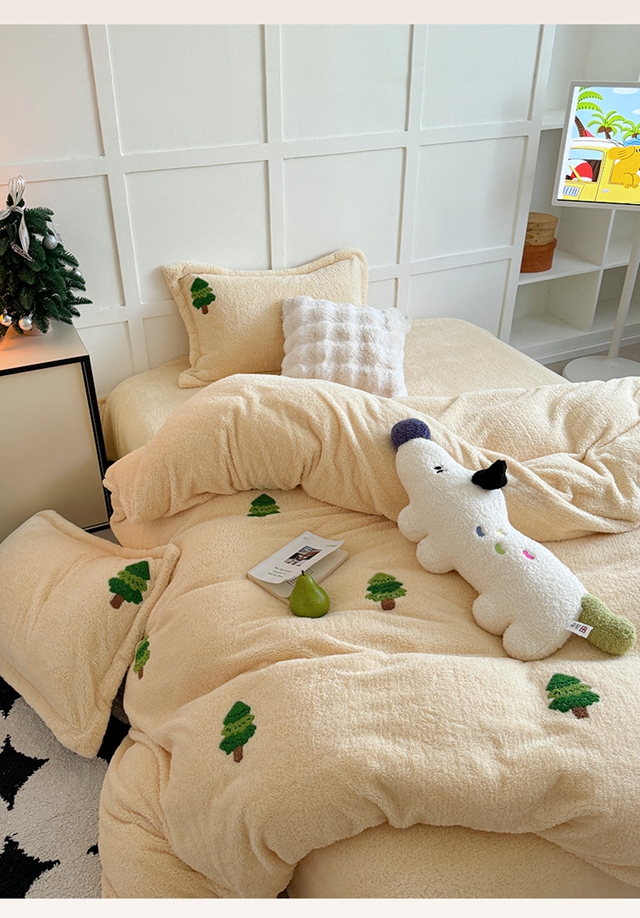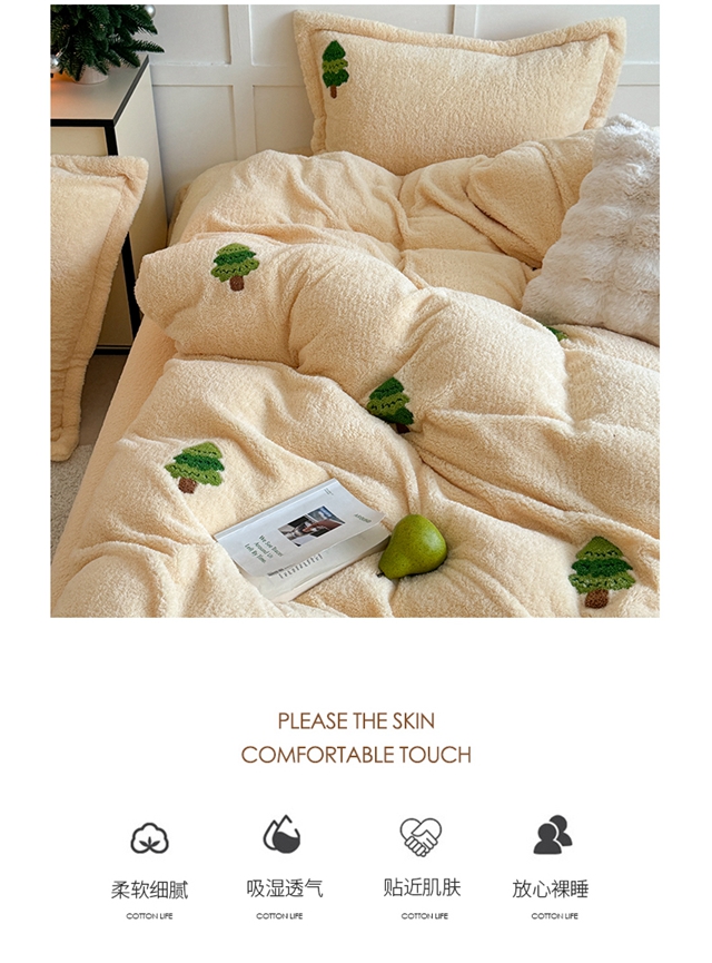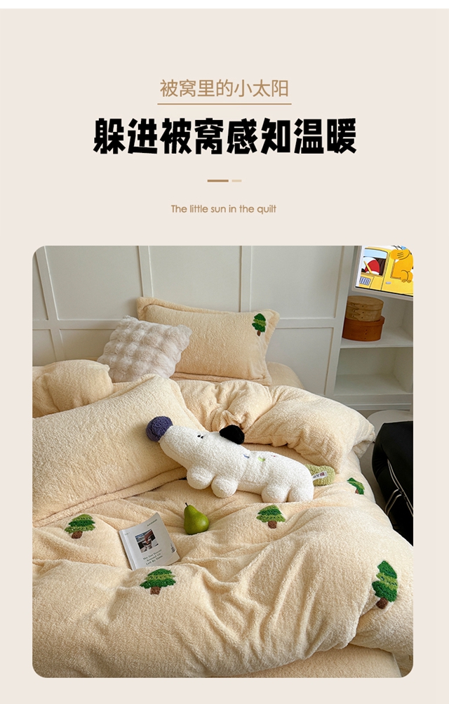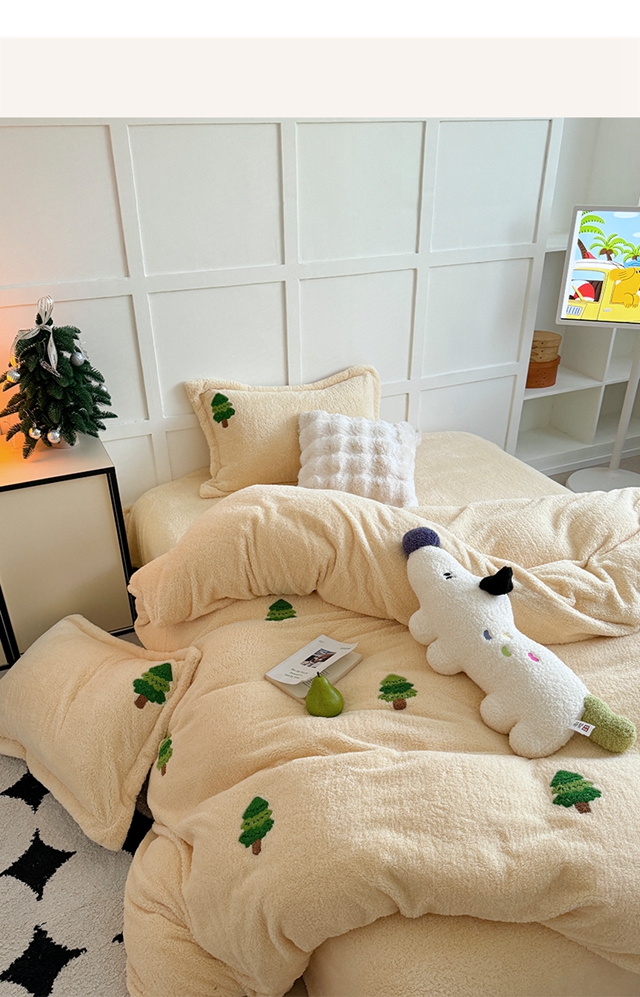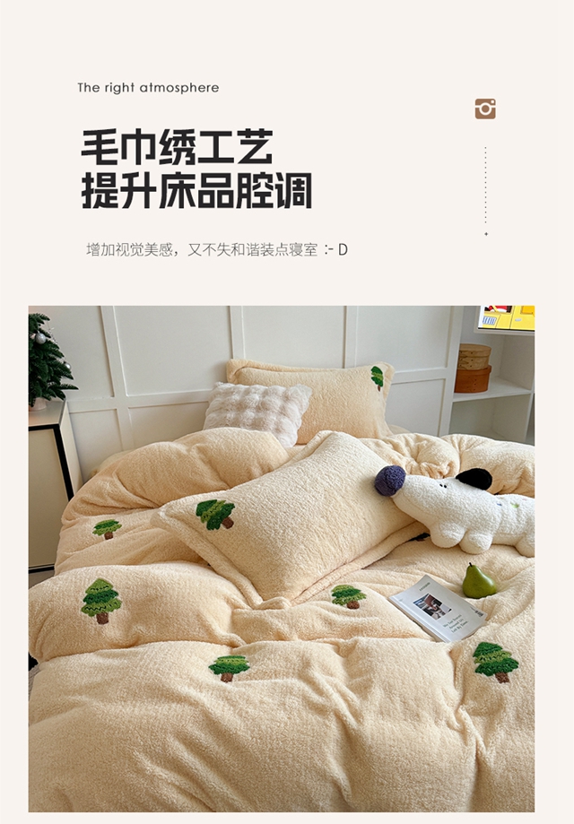 萝莉家纺 2025新款加厚泰迪绒毛巾绣四件套 圣诞树黄