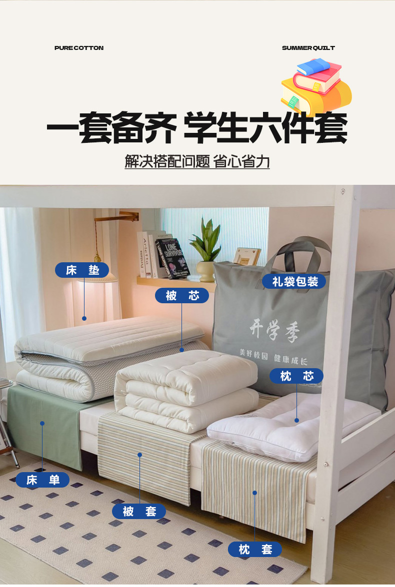 当前位置: 91家纺网 > 商品网购 > 床品套件 > 多件套 > 多件套 > 梵克保罗 2025春夏新款水洗棉学生宿舍床单款床笠款三件套六件套大礼包学生季 小绿条