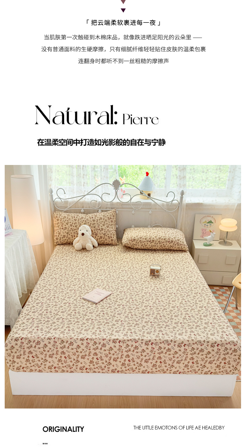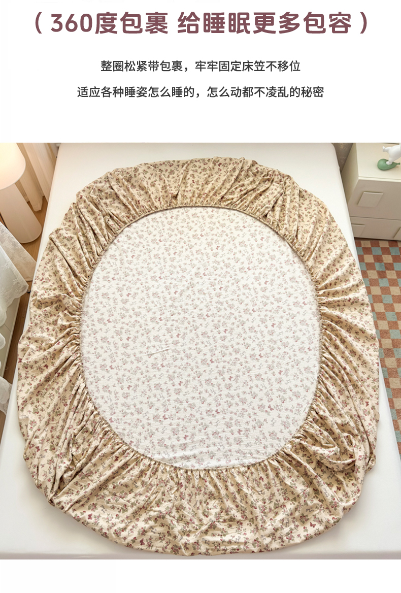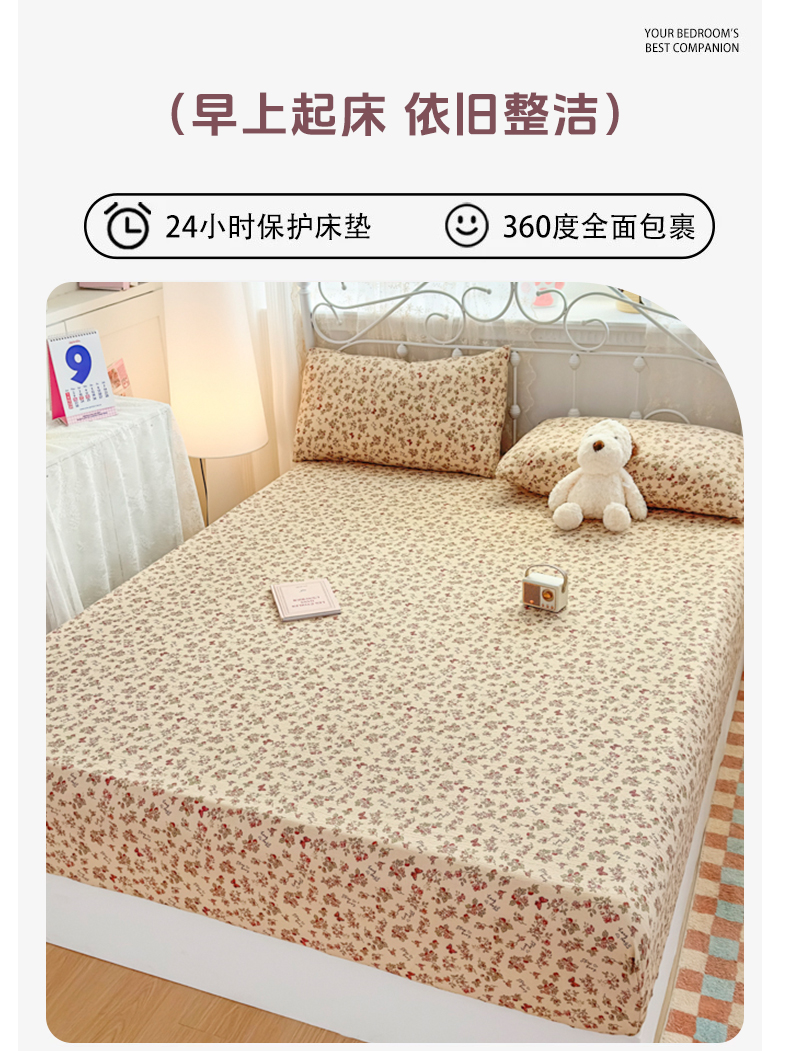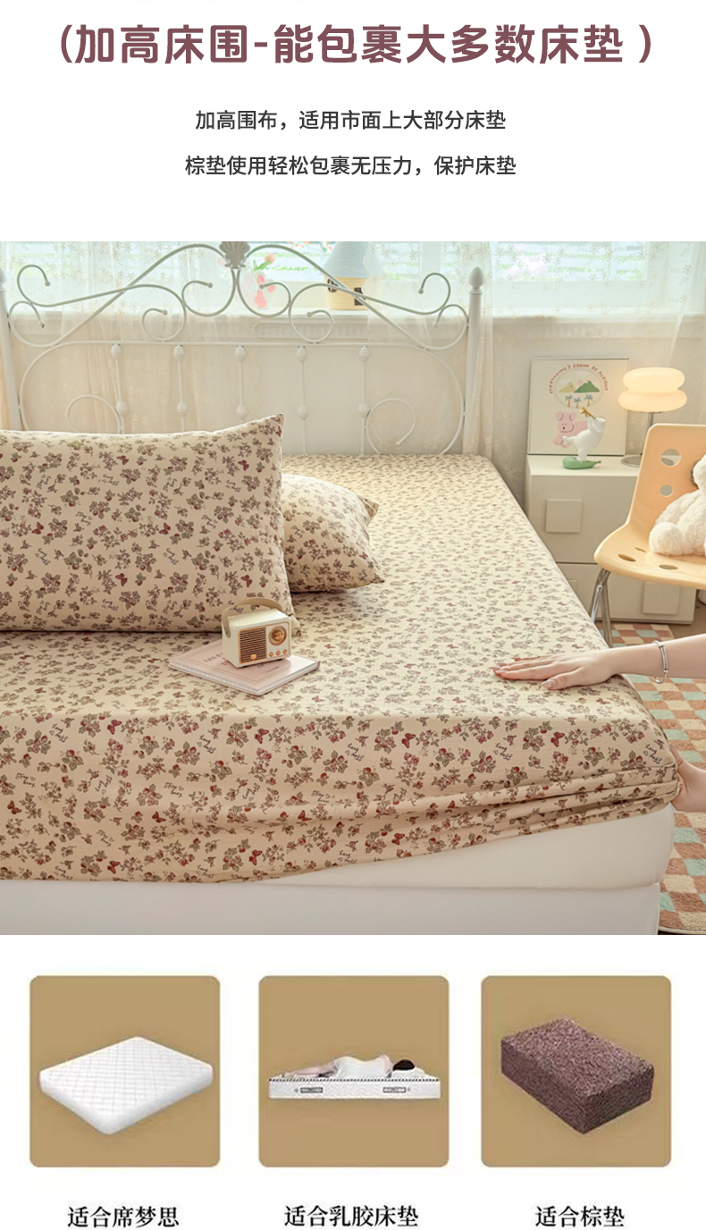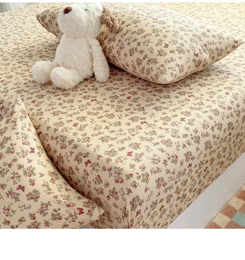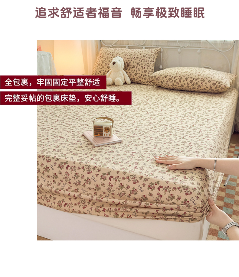• 91家纺网 家纺一手货源 找家纺 爱彼家纺 2025新款水洗水洗棉印花床笠单品床笠床笠三件套风格二 莓花蝶语