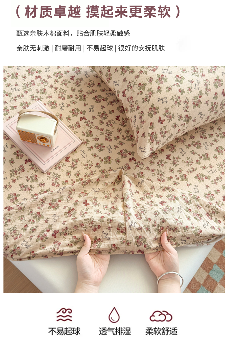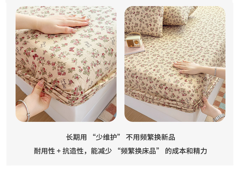 爱彼家纺 2025新款水洗水洗棉印花床笠单品床笠床笠三件套风格二 莓花蝶语