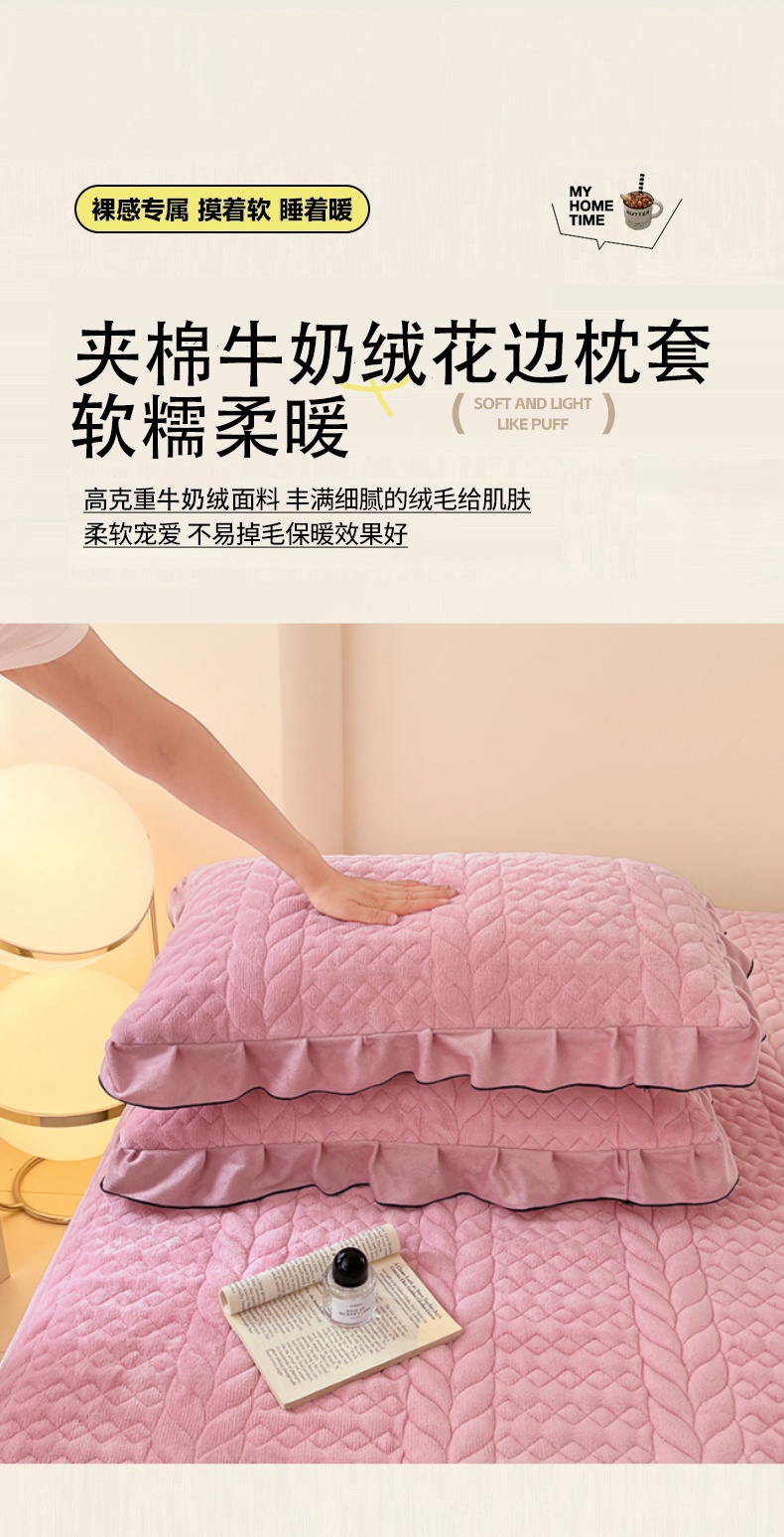 商品名称:梦舒羽 2025新款牛奶绒花边夹棉枕套单人宿舍枕芯套枕头套一对-轻奢 花边轻奢款-浪漫粉