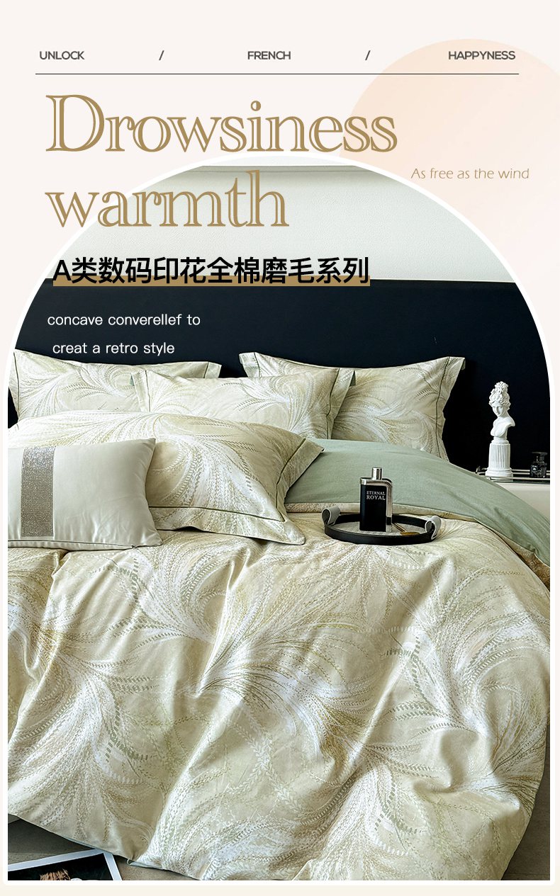 当前位置: 91家纺网 > 商品网购 > 床品套件 > 四件套 > 普通磨毛四件套 > 梵克保罗 2025秋冬新款数码印花全棉磨毛单被套三件套四件套系列 麦穗-绿