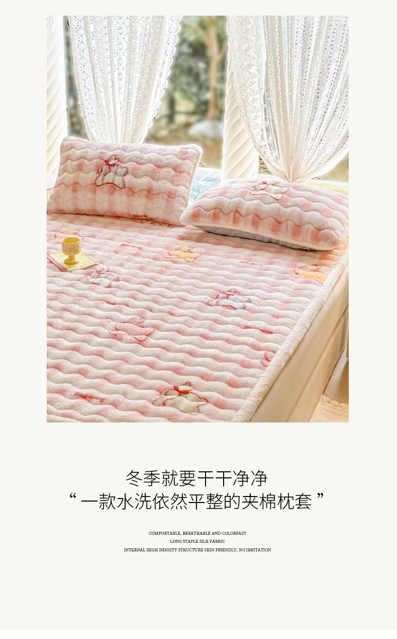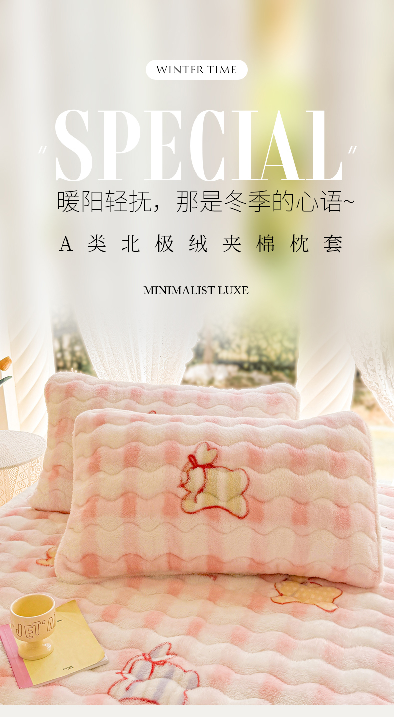 商品名称:LIFE.丽芙 2025秋冬新款A类北极绒保暖加厚夹棉枕套 意趣-粉