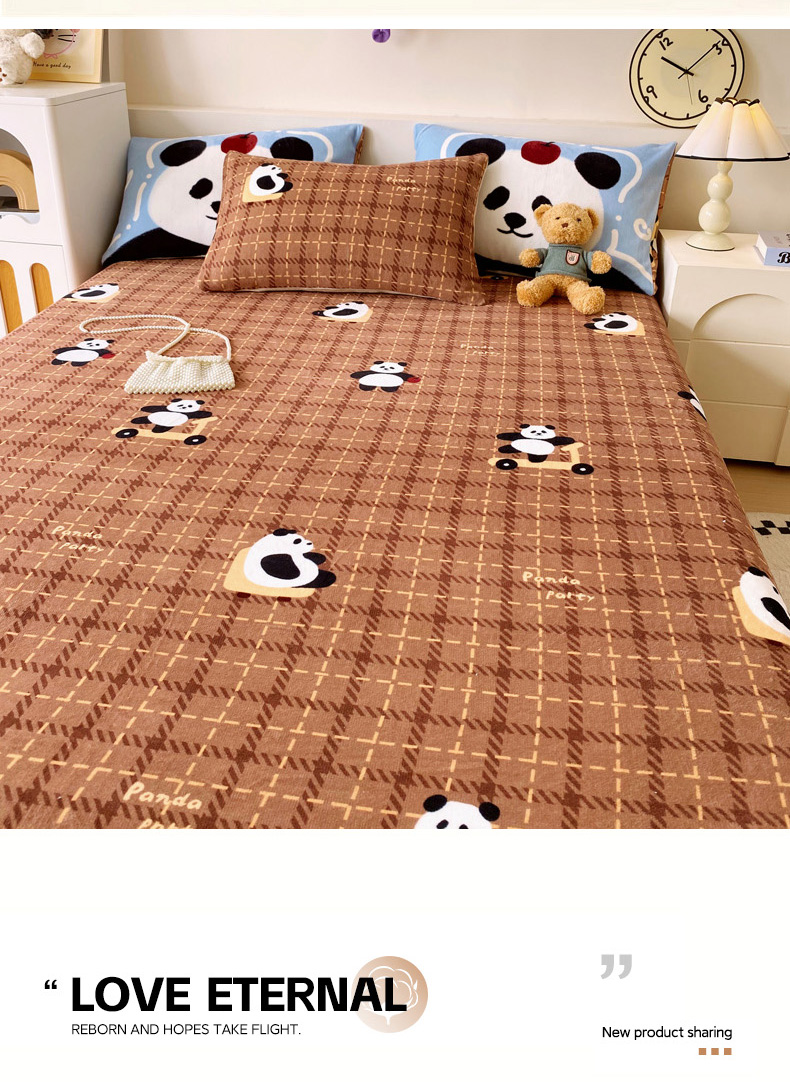 葡萄家 2025年新款牛奶绒印花单床单萌系卡通床单款 滑板熊猫