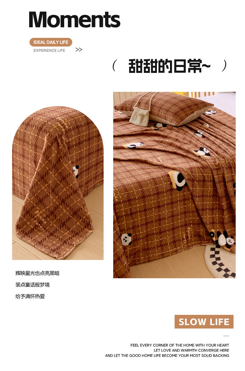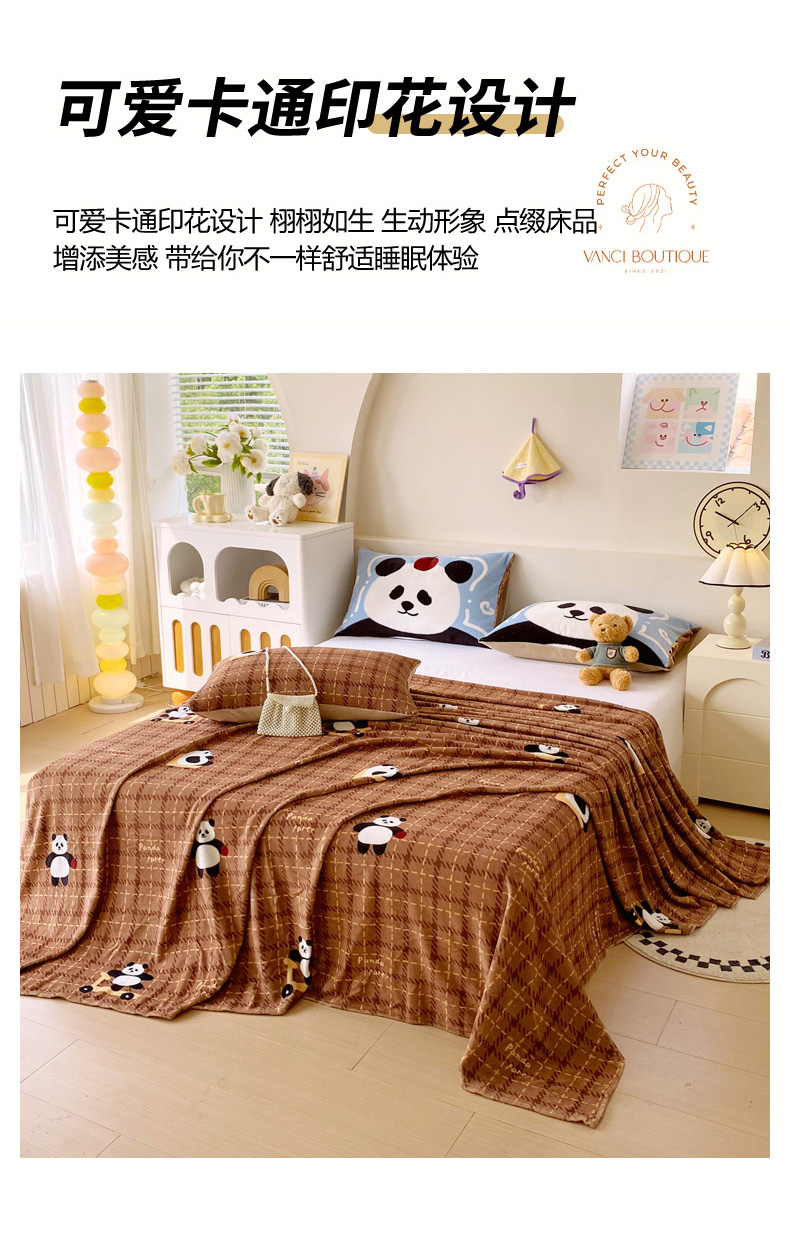 • 91家纺网 家纺一手货源 找家纺 葡萄家 2025年新款牛奶绒印花单床单萌系卡通床单款 滑板熊猫