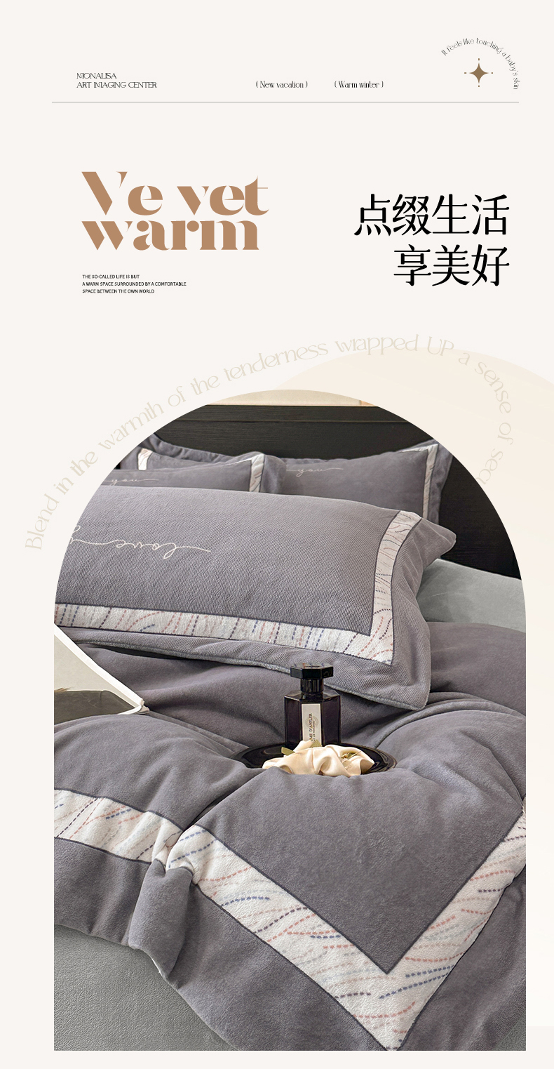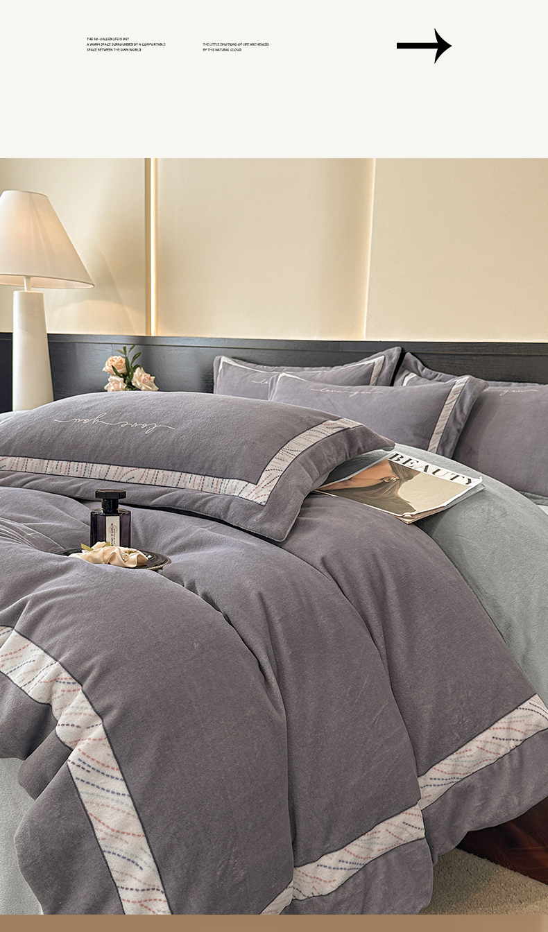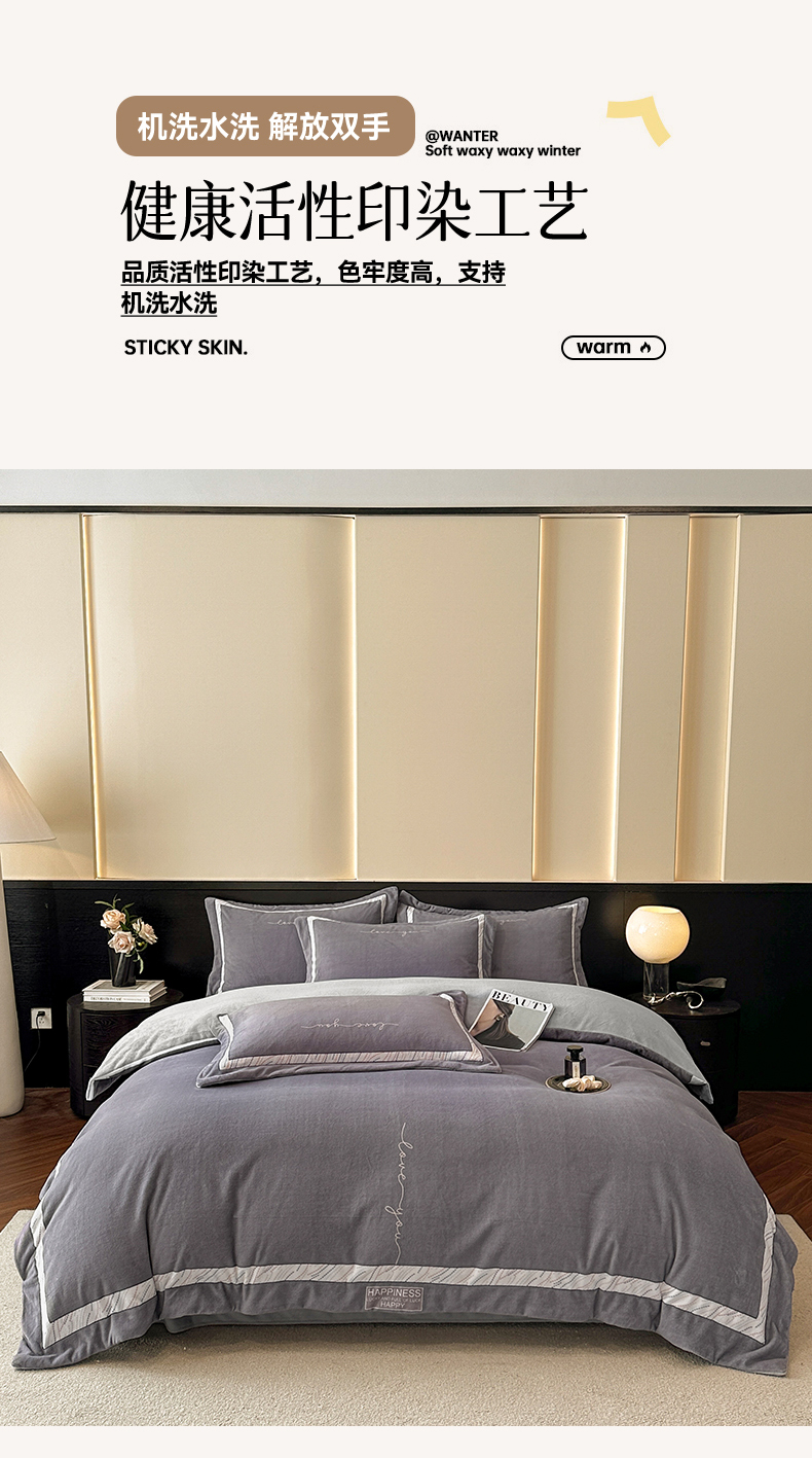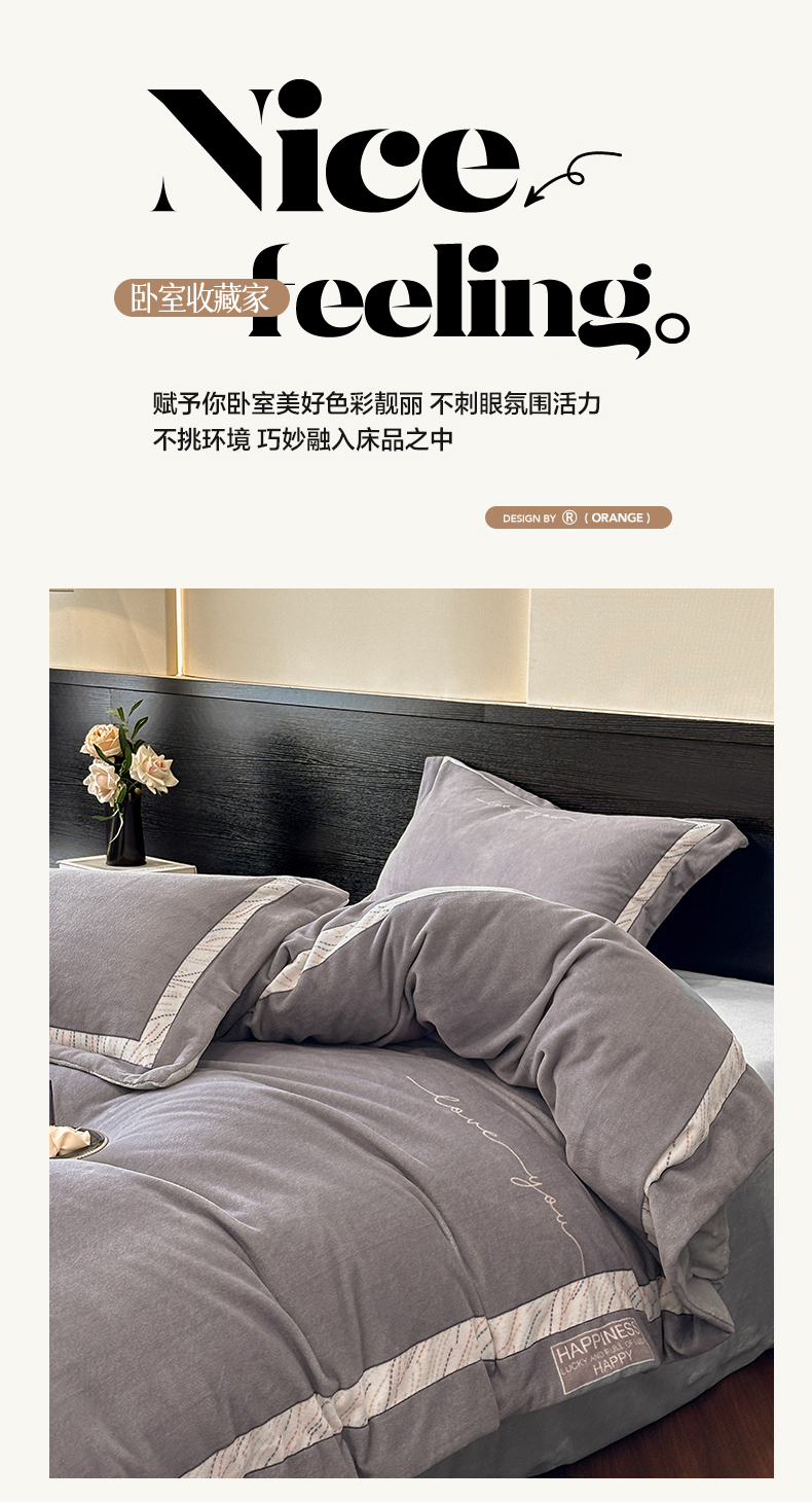 当前位置: 91家纺网 > 商品网购 > 床品套件 > 四件套 > 牛奶绒四件套 > 星座家纺 2025新款轻奢牛奶绒四件套-极简系列 绅士灰