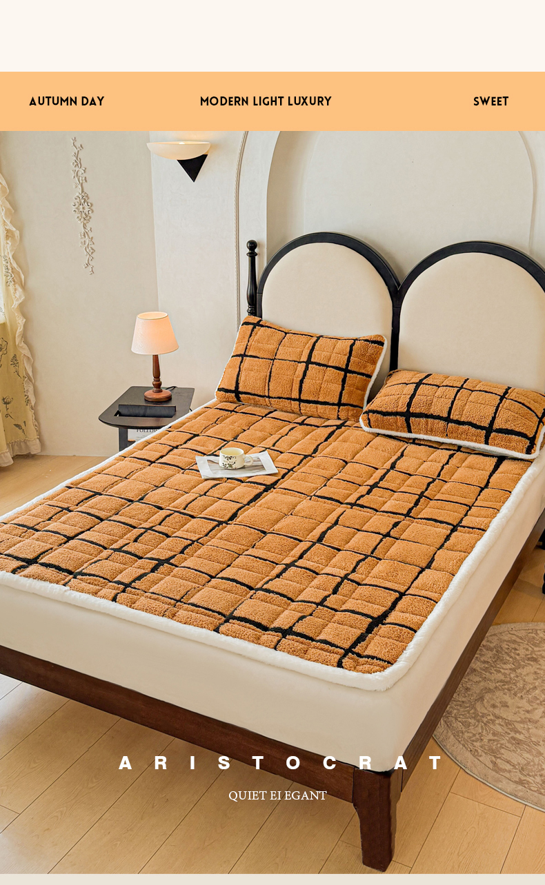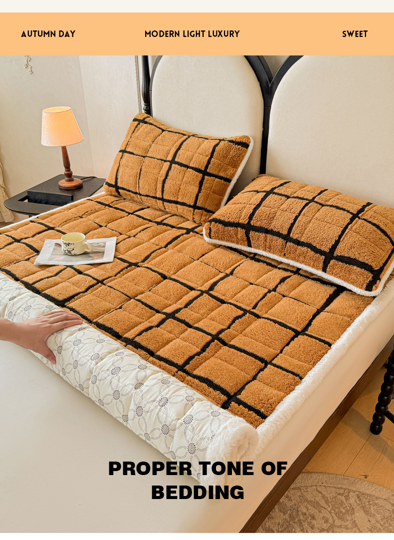 当前位置: 91家纺网 > 商品网购 > 床垫/床褥 > LIFE.丽芙 2025秋冬新款色纱提花舒棉绒加厚夹棉床垫床护垫单件简约床褥床垫子三件套 格调-黄棕