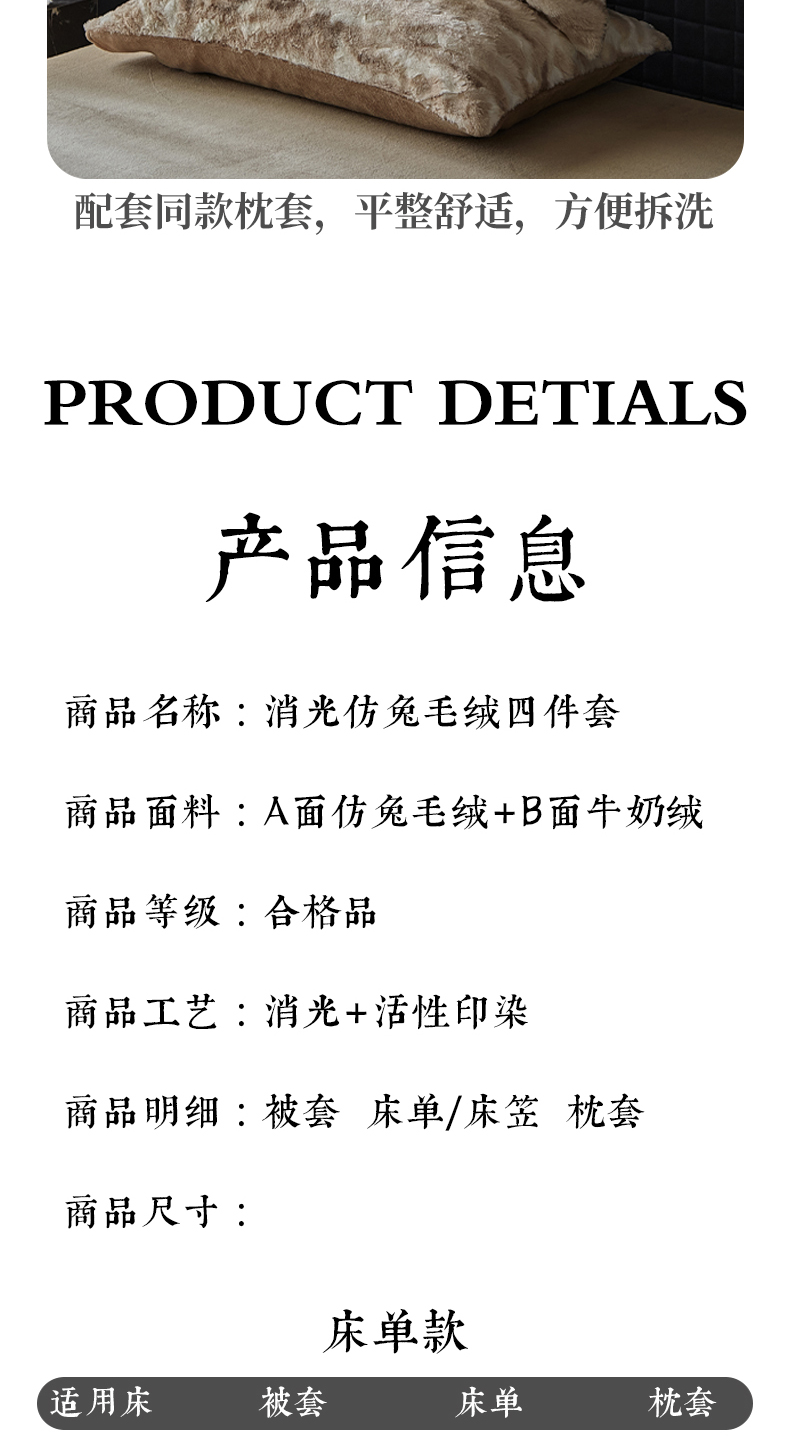 【床单款】1.8四件套-被套200x230 | ¥105.00 |