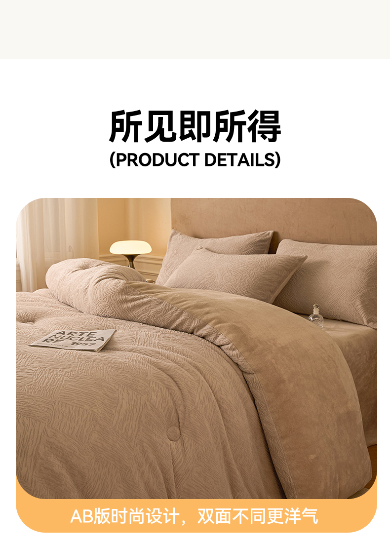 (总)星座家纺 2025新款轻奢牛奶绒四件套-极简系列,爱玛橙,冰雾蓝,蜜桃粉,绅士灰,朱砂红