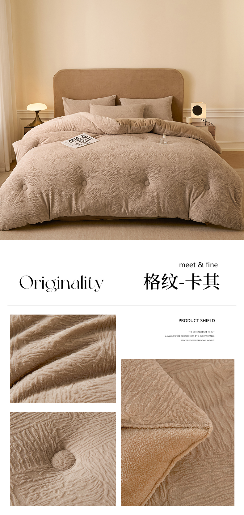 商品名称:星座家纺 2025新款雕花绒被子被芯冬被 格纹-卡其