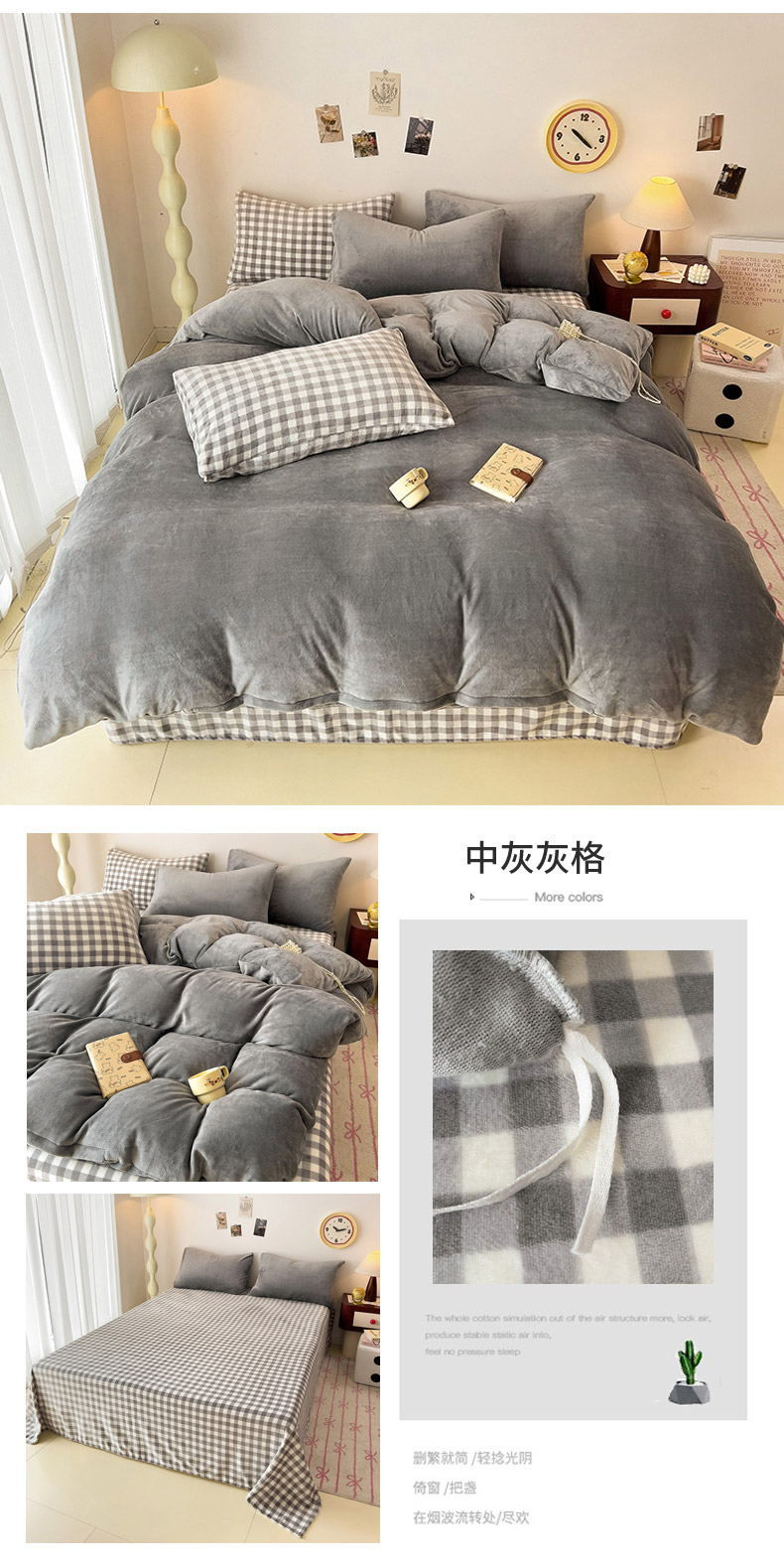 商品名称:芷凡家纺 2025新款牛奶绒加厚纯色条纹格子被套 牛奶绒被套-中灰