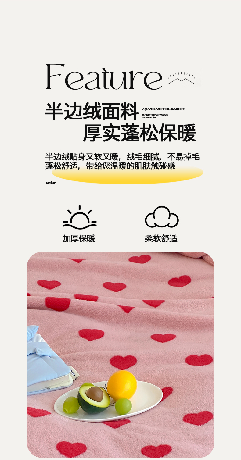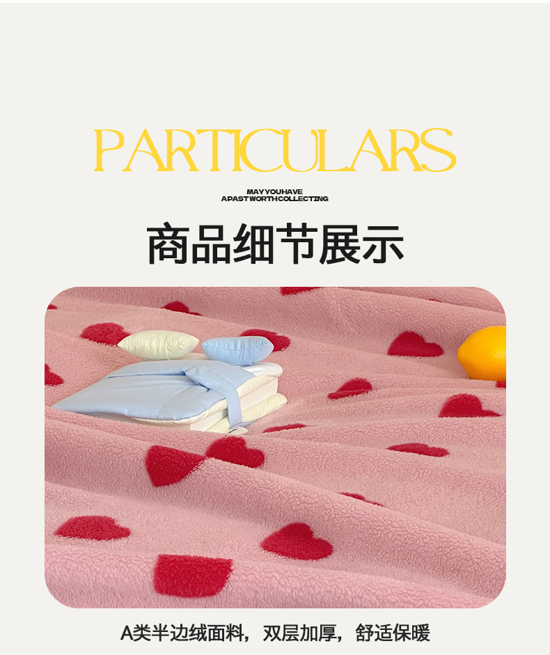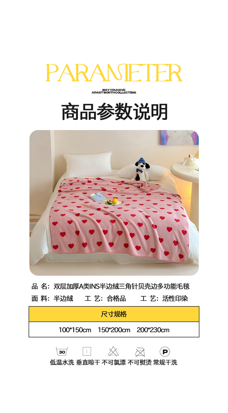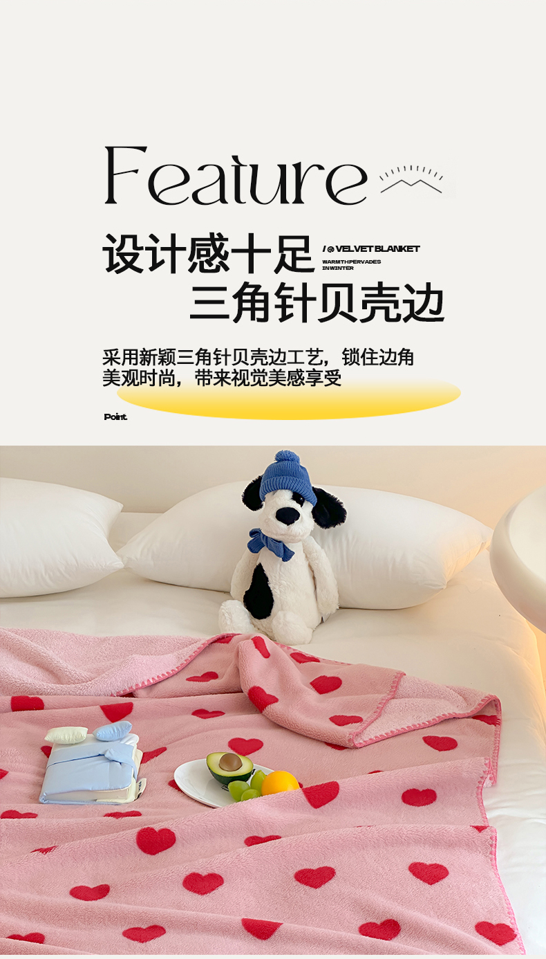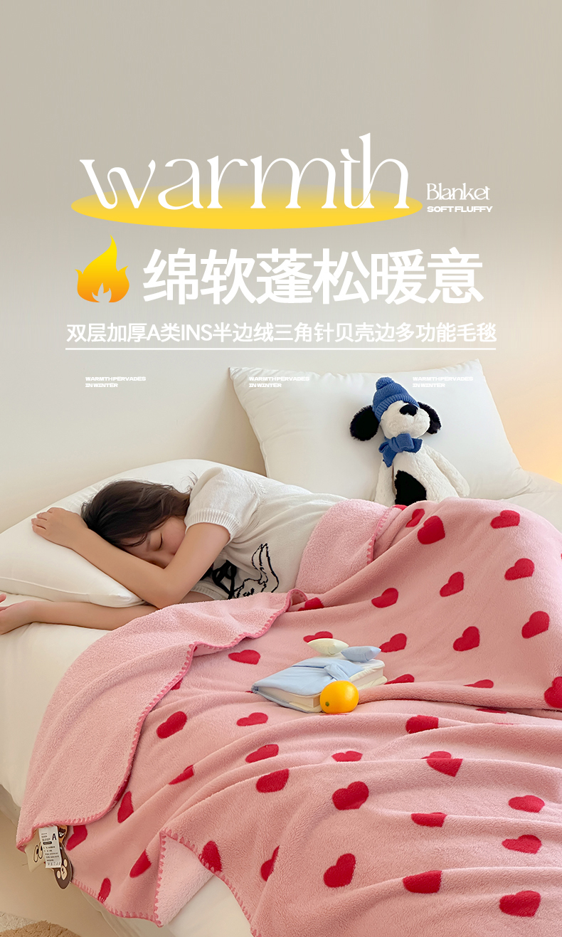 当前位置: 91家纺网 > 商品网购 > 毛毯休闲毯绒毯 > 毛毯 > 桃子家居 2025新款A类ins加厚半边绒米粒绒牛奶绒三角针贝壳边多功能毛毯毯子 绒毛毯-三角针粉爱心