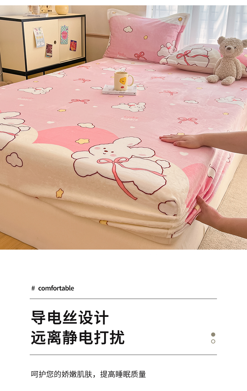 • 91家纺网 家纺一手货源 找家纺 寻米 2025新款高克重加厚保暖牛奶绒床笠-大床图 好眠兔兔
