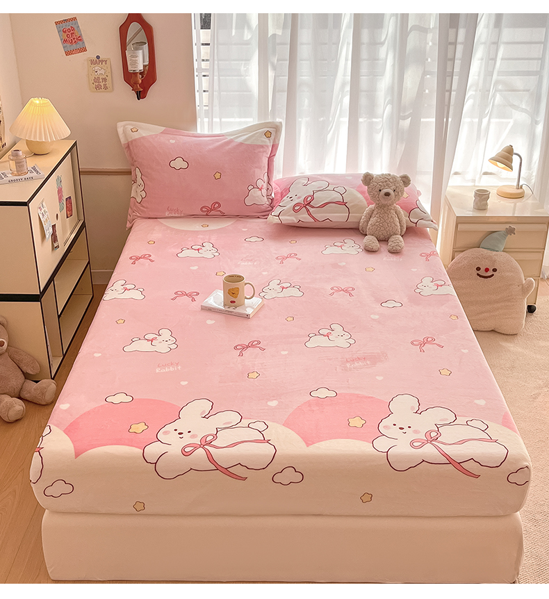 • 91家纺网 家纺一手货源 找家纺 寻米 2025新款高克重加厚保暖牛奶绒床笠-大床图 甜味小猫