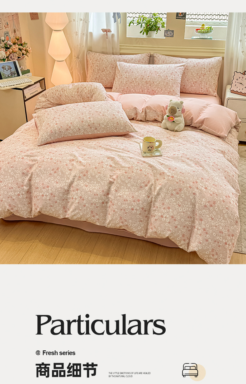 当前位置: 91家纺网 > 商品网购 > 床品套件 > 四件套 > 全棉普通四件套 > 灰鲸 2025新款A类全棉磨毛四件套 零落-粉