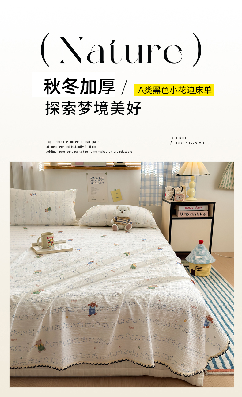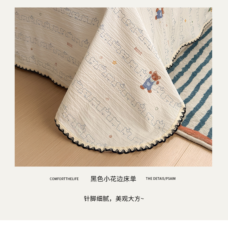 当前位置: 91家纺网 > 商品网购 > 床品套件 > 三件套 > 沐芷 2025 秋冬加厚床单高克重双层纱黑色小花边被单床单三件套 童趣熊影