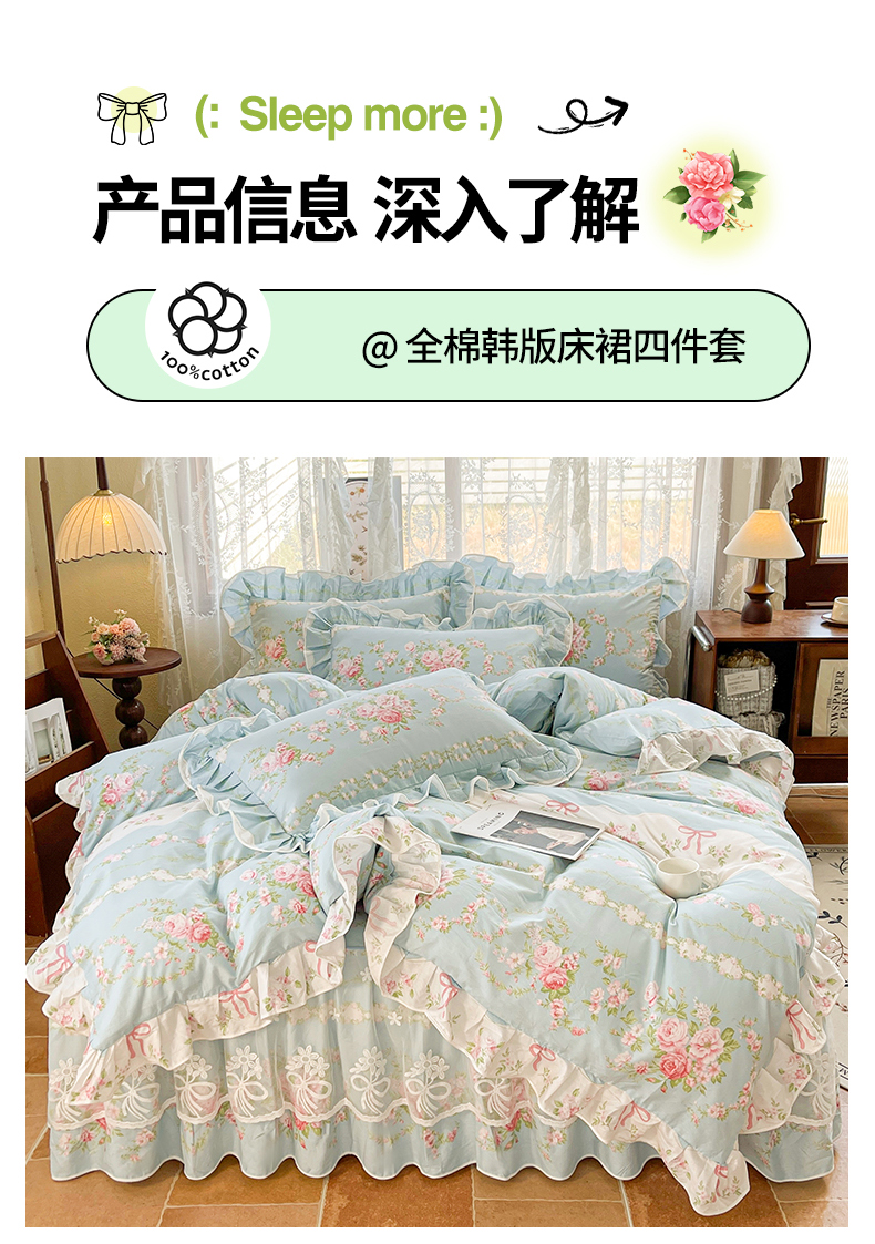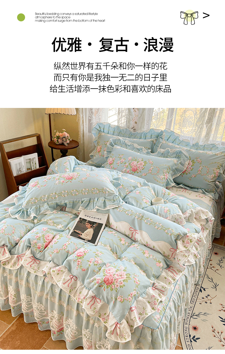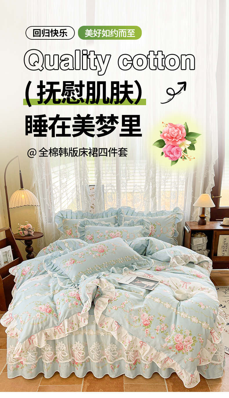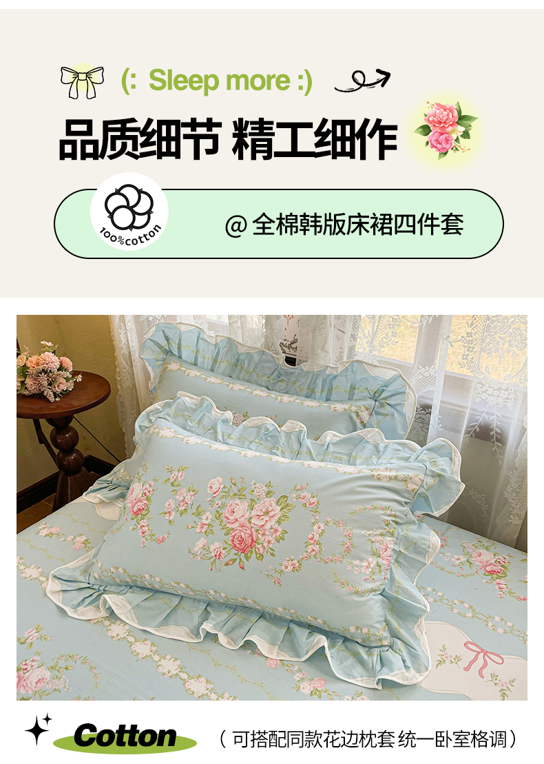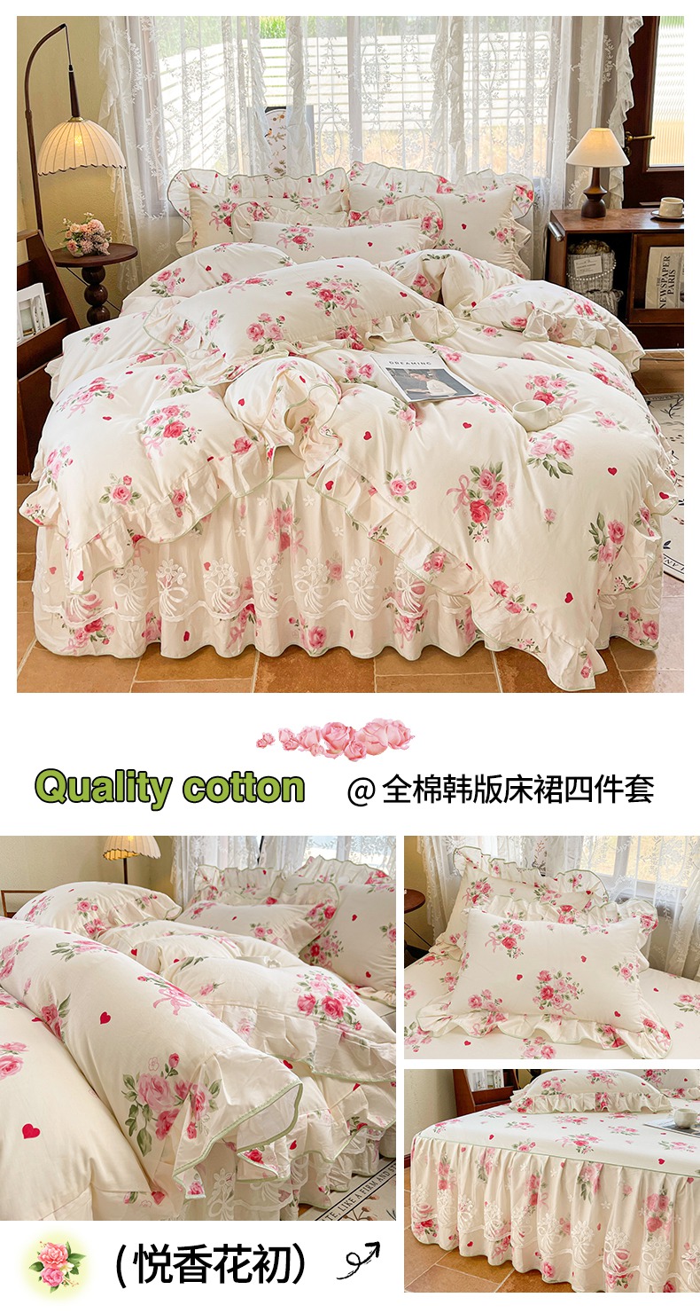 当前位置: 91家纺网 > 商品网购 > 床品套件 > 四件套 > 其它四件套 > 宜凡家纺 2025新款全棉韩版床裙四件套 雨棠酌春