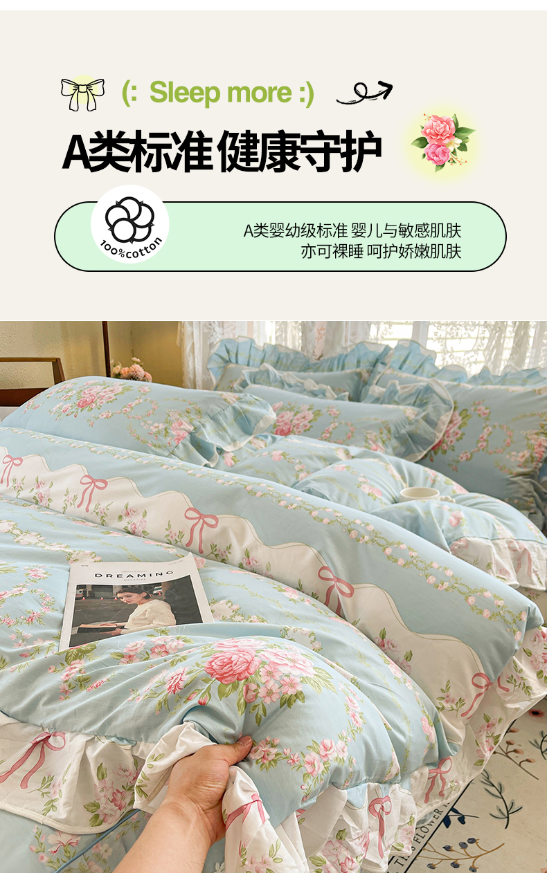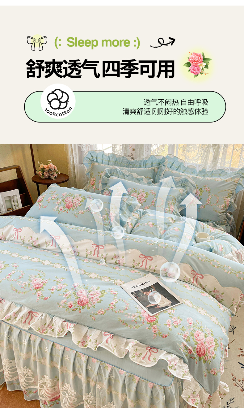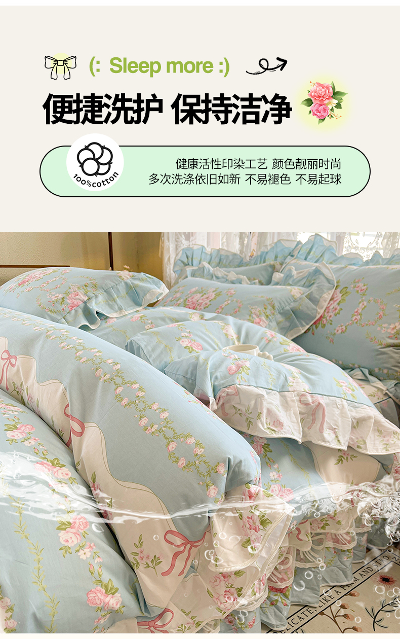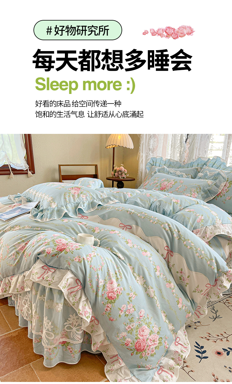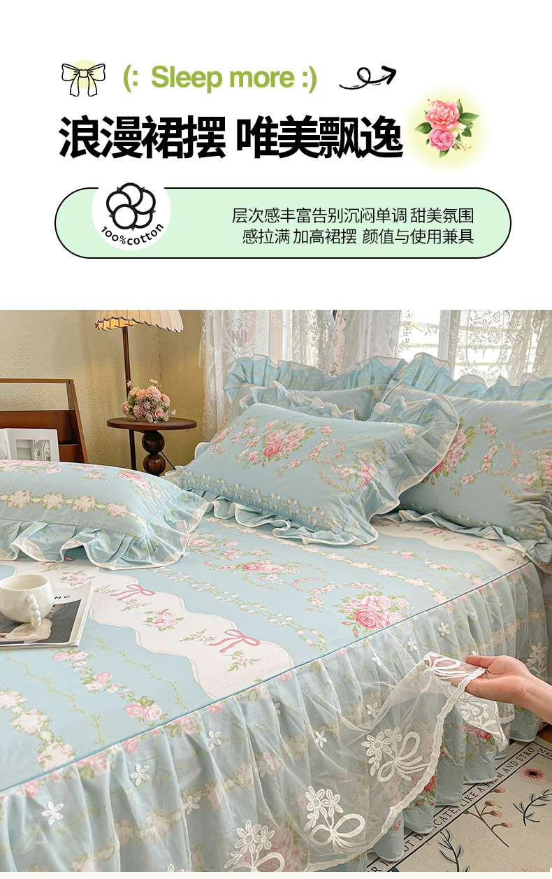 当前位置: 91家纺网 > 商品网购 > 床品套件 > 四件套 > 其它四件套 > 宜凡家纺 2025新款全棉韩版床裙四件套 雨棠酌春