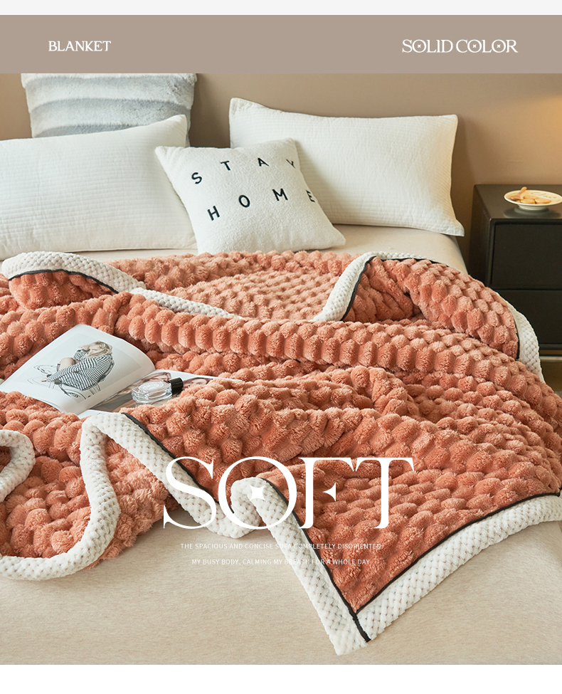 (总)莱家富 2026新款500克加厚A类华夫格牛奶绒双面毛毯轻奢休闲盖毯子多尺寸多功能午睡办,组合图仅做展示,都市灰,湖蓝,焦糖,明黄,奶白,嫩粉,苹果绿